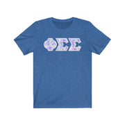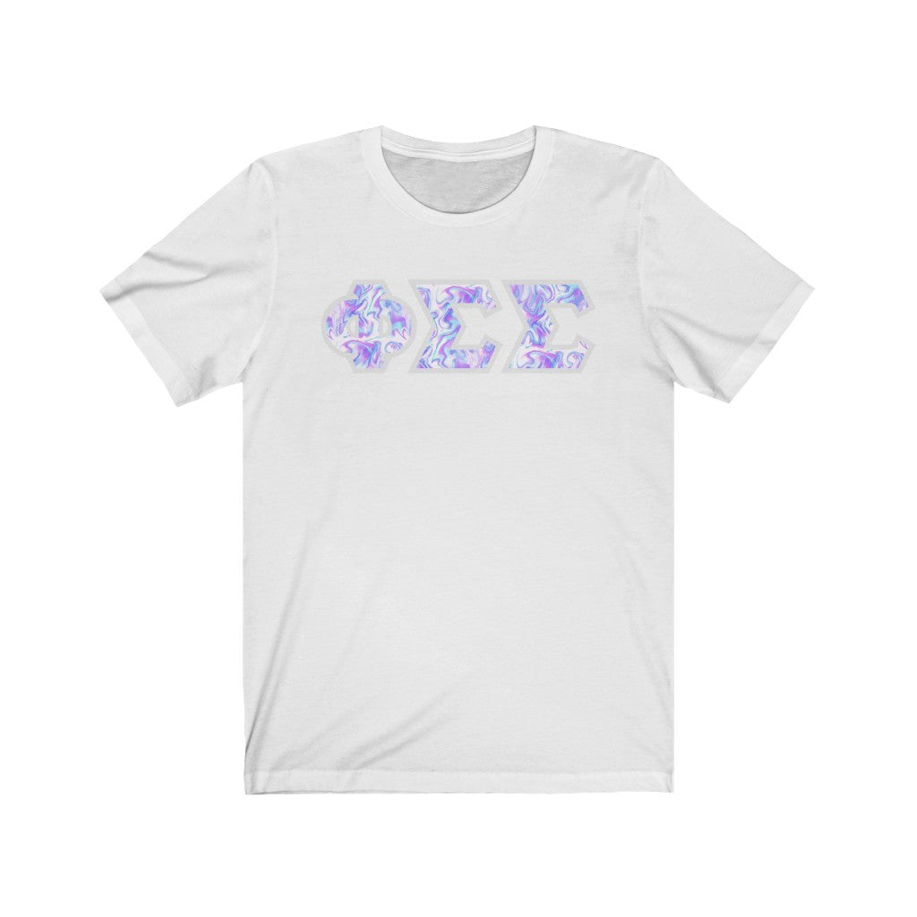 These Phi Sigma Sigma Sorority letters are printed NOT stitched. They come in a number of color and garment options.