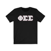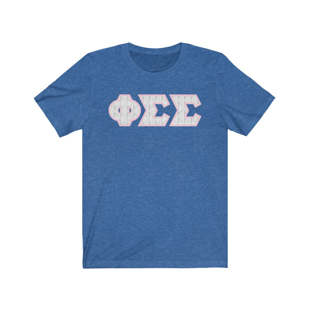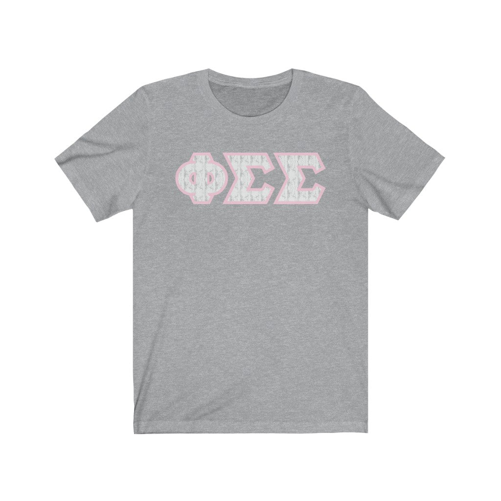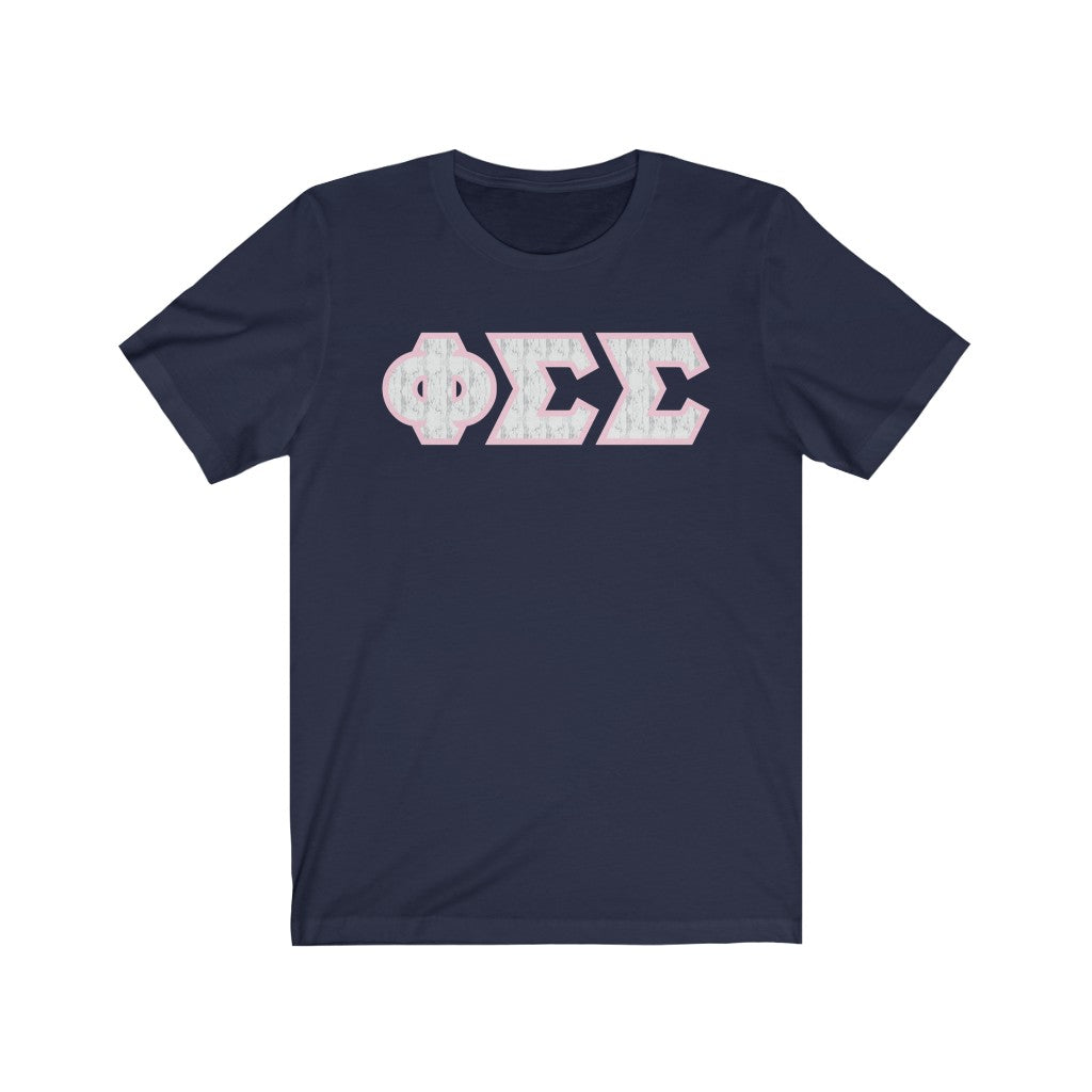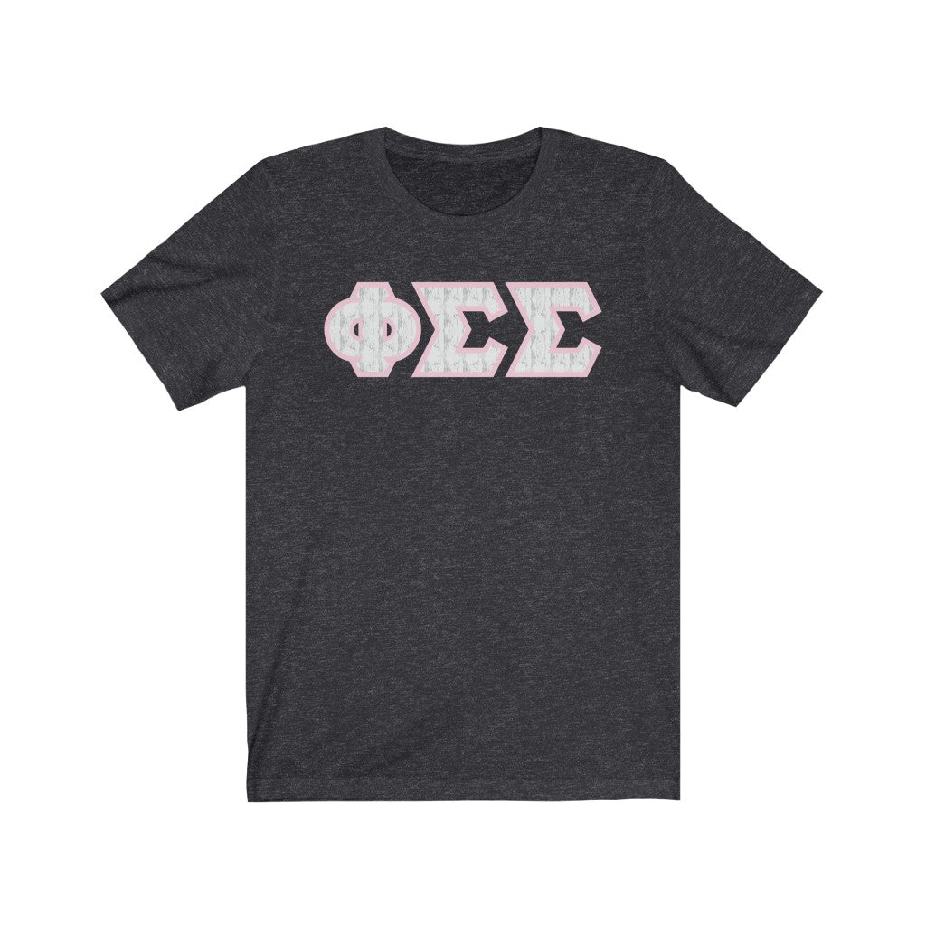 These Phi Sigma Sigma Sorority letters are printed NOT stitched. They come in a number of color and garment options.