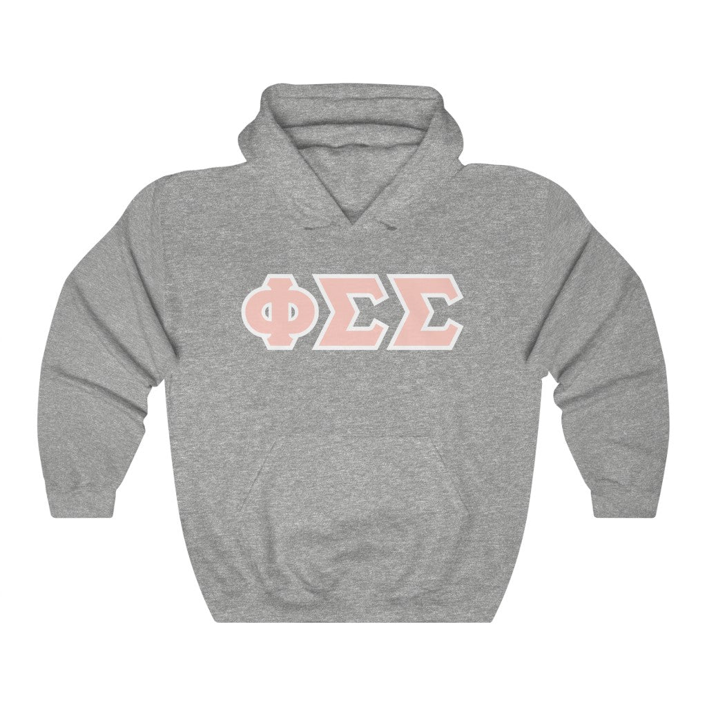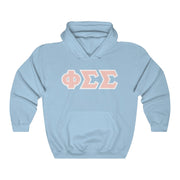 Phi Sigma Sigma Printed Letters | Peach with White Border Hoodie