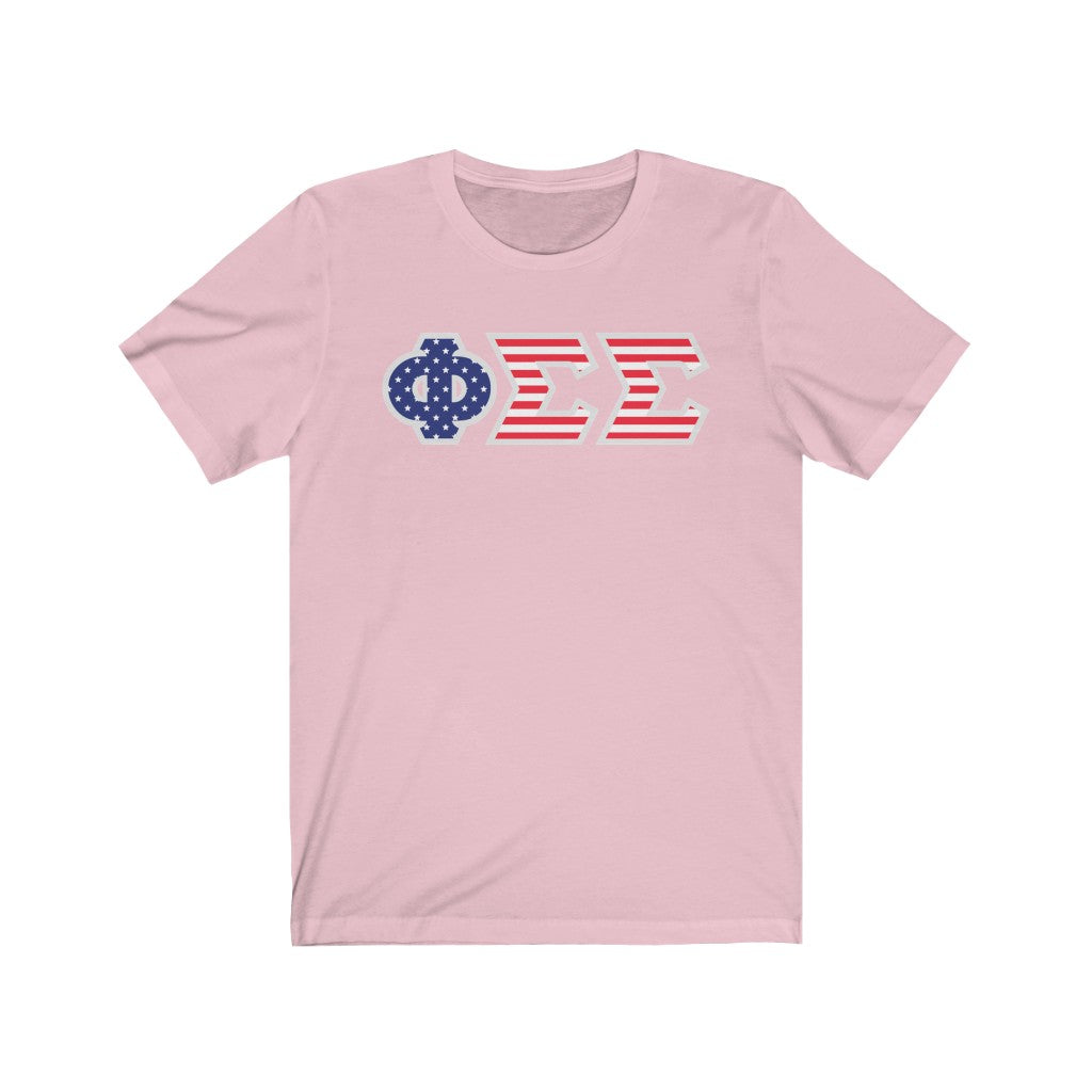 Phi Sigma Sigma Printed Letters | American Flag T-Shirt