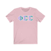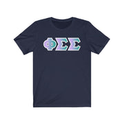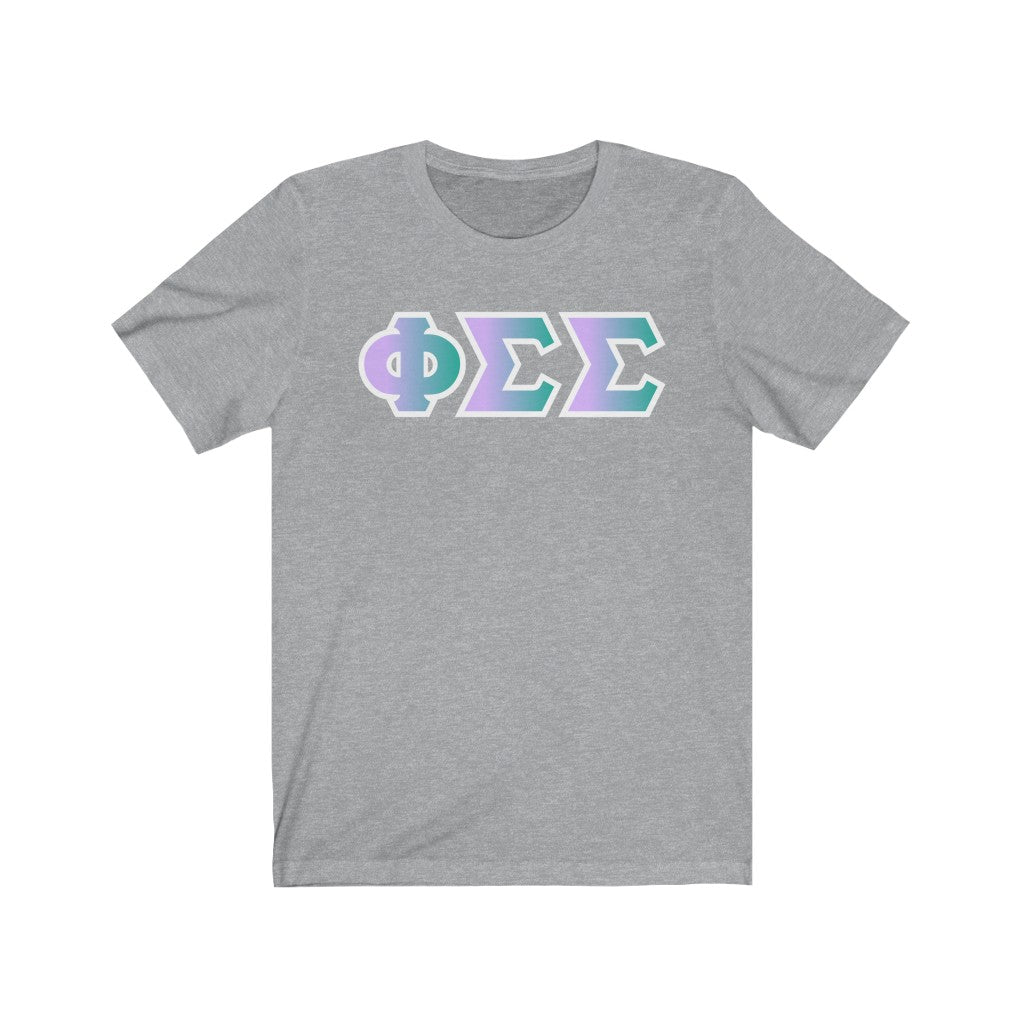 These Phi Sigma Sigma Sorority letters are printed NOT stitched. They come in a number of color and garment options.