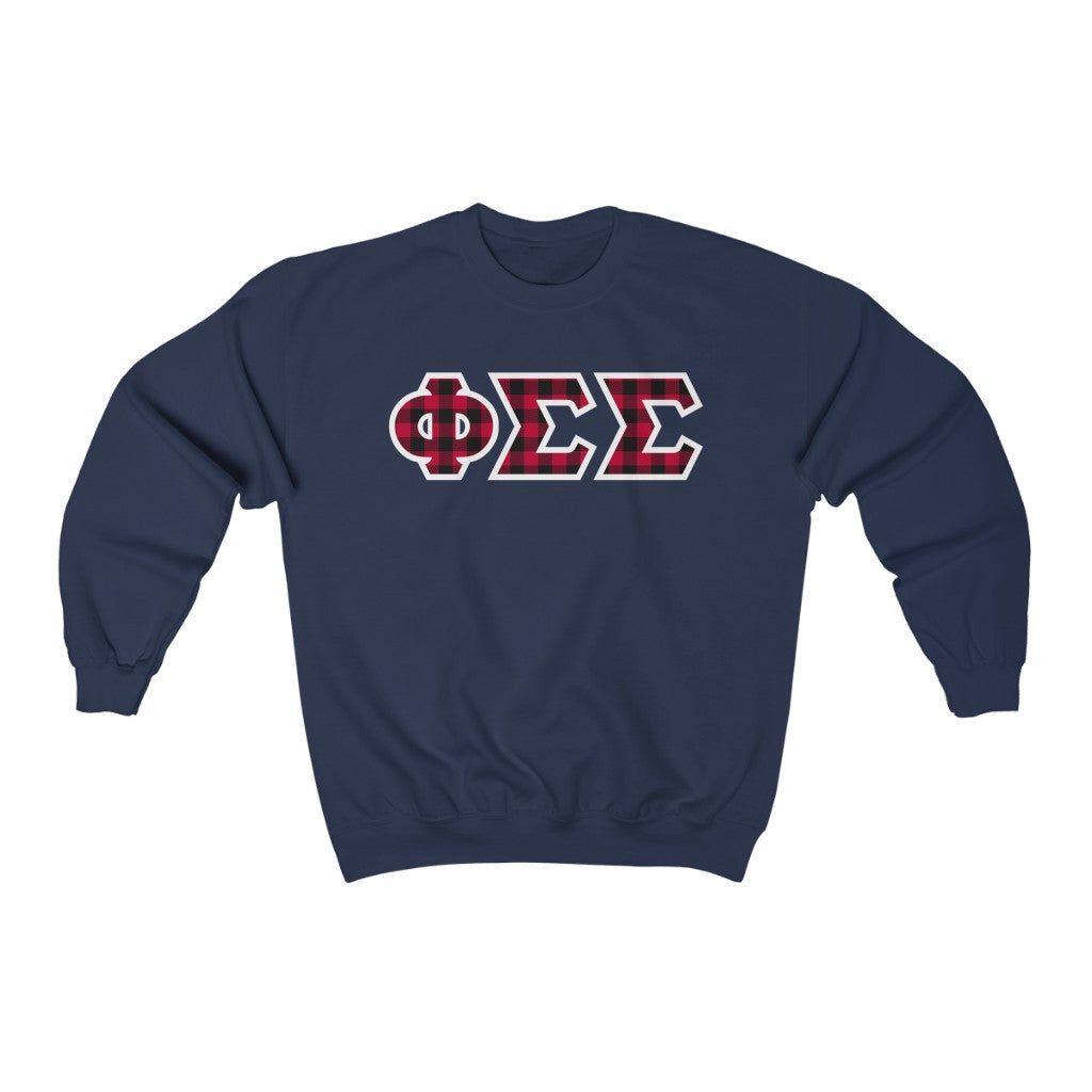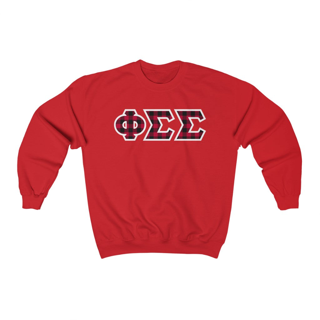 Phi Sigma Sigma Printed Letters | Buffalo Plaid Crewneck