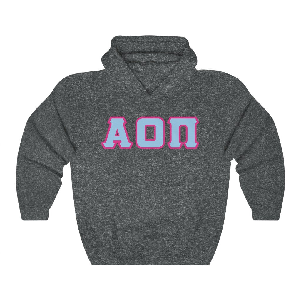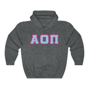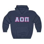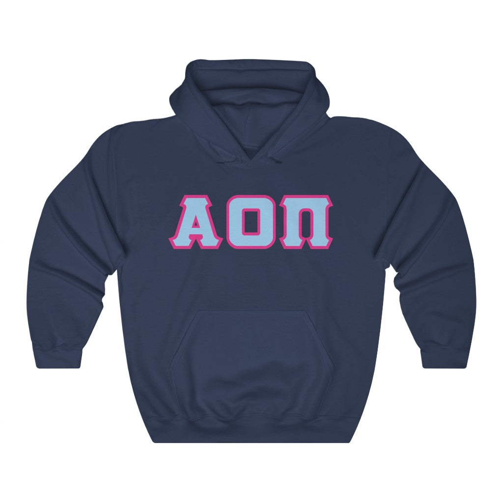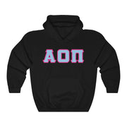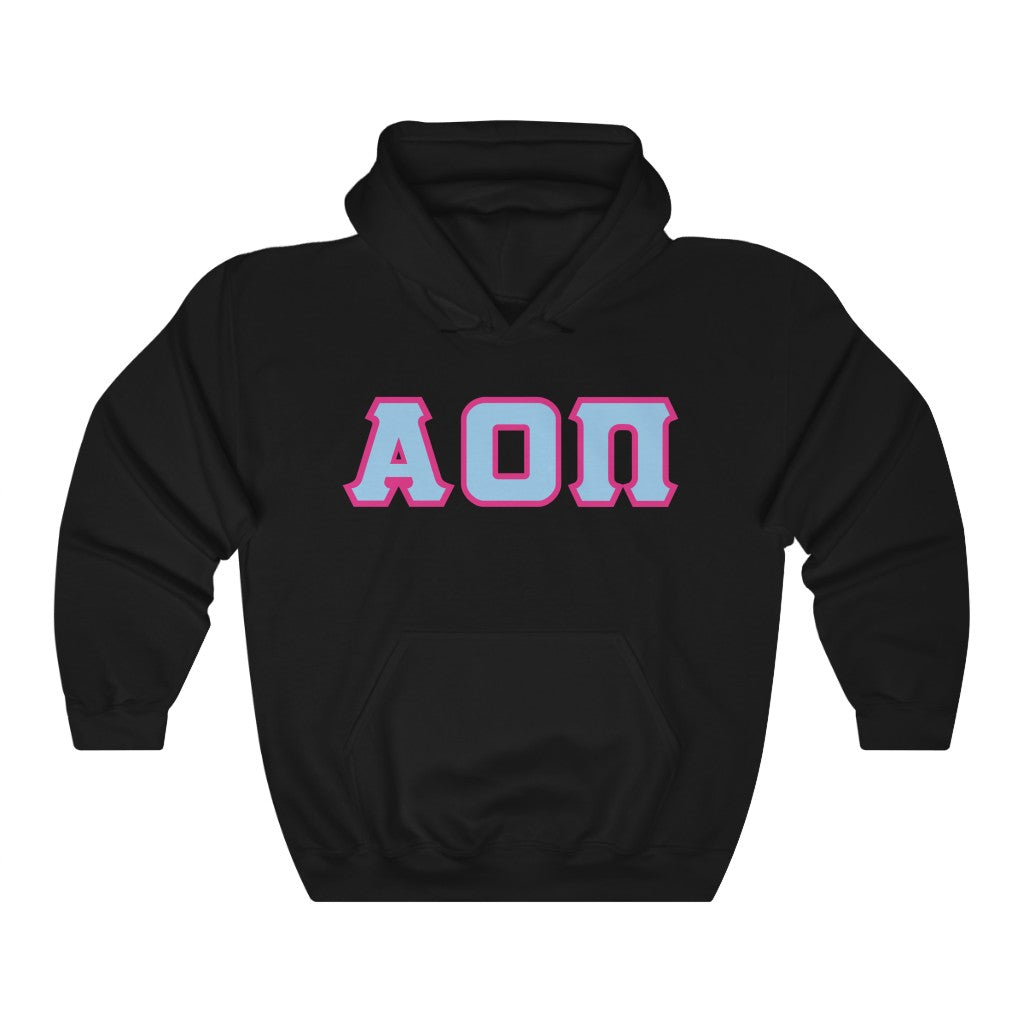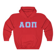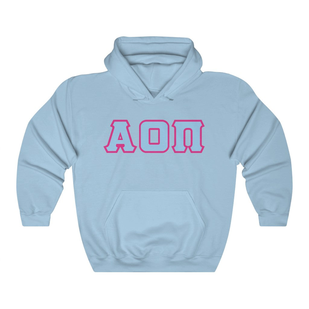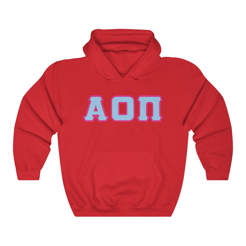 Alpha Omicron Pi Printed Letters | Light Blue with Red Border Hoodie