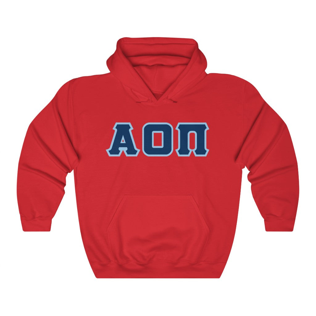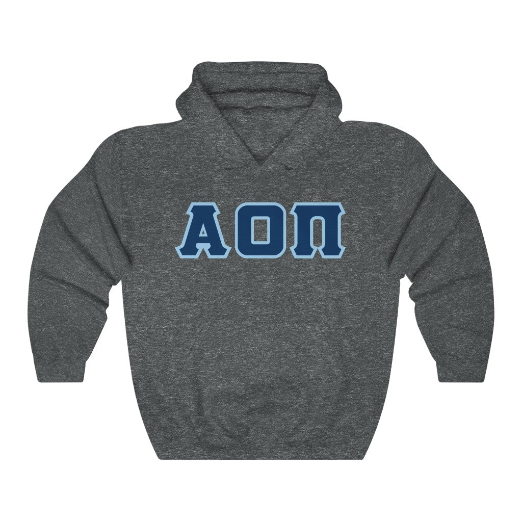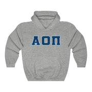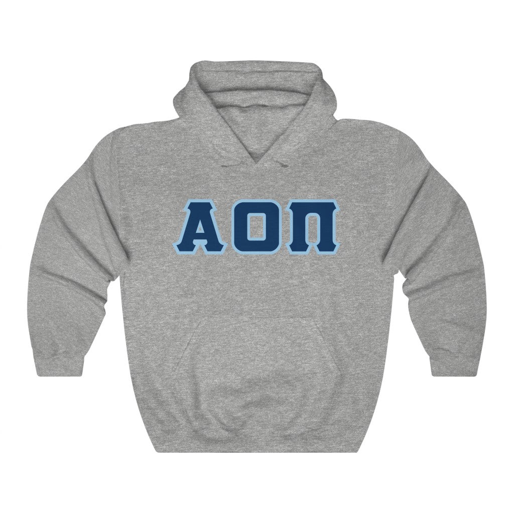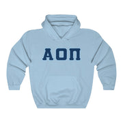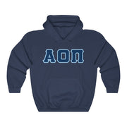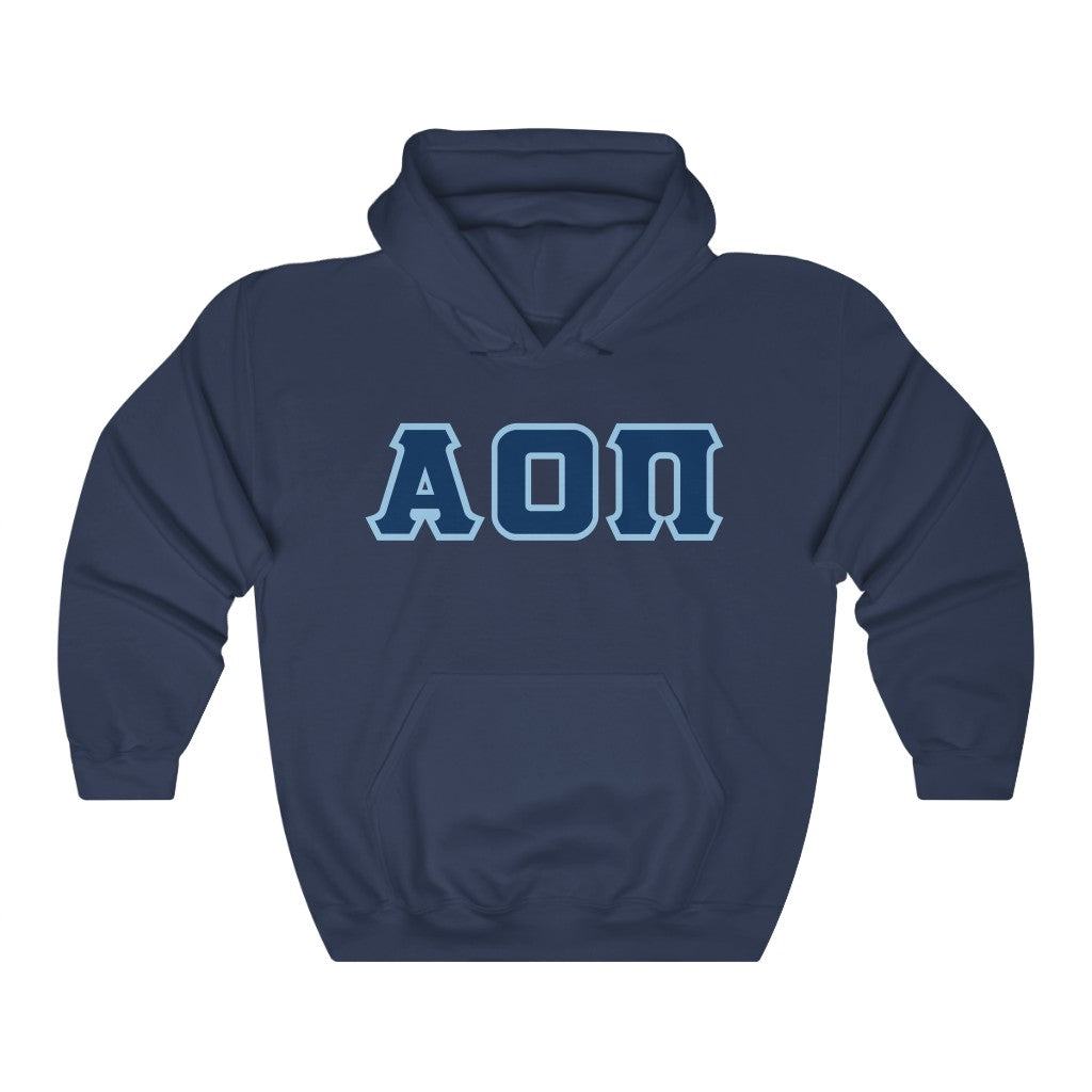 Alpha Omicron Pi Printed Letters | Navy with L Blue Border Hoodie