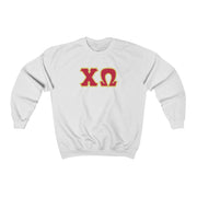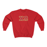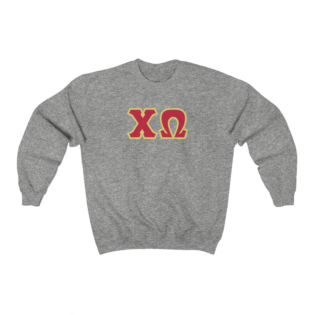 Chi Omega Print Letters | Cardinal & Straw Border Crewneck