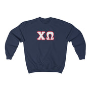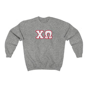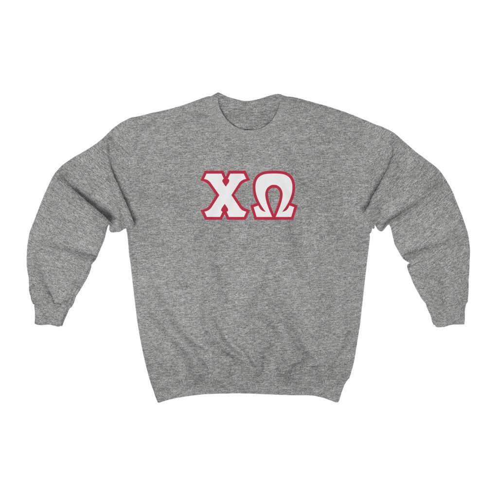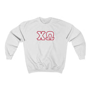 Chi Omega Print Letters | White & Cardinal Border Crewneck