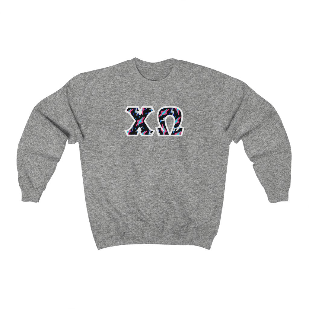 Chi Omega Printed Letters | Bayside Black Crewneck