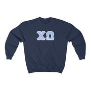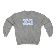 Chi Omega Printed Letters | Blue with White Border Crewneck