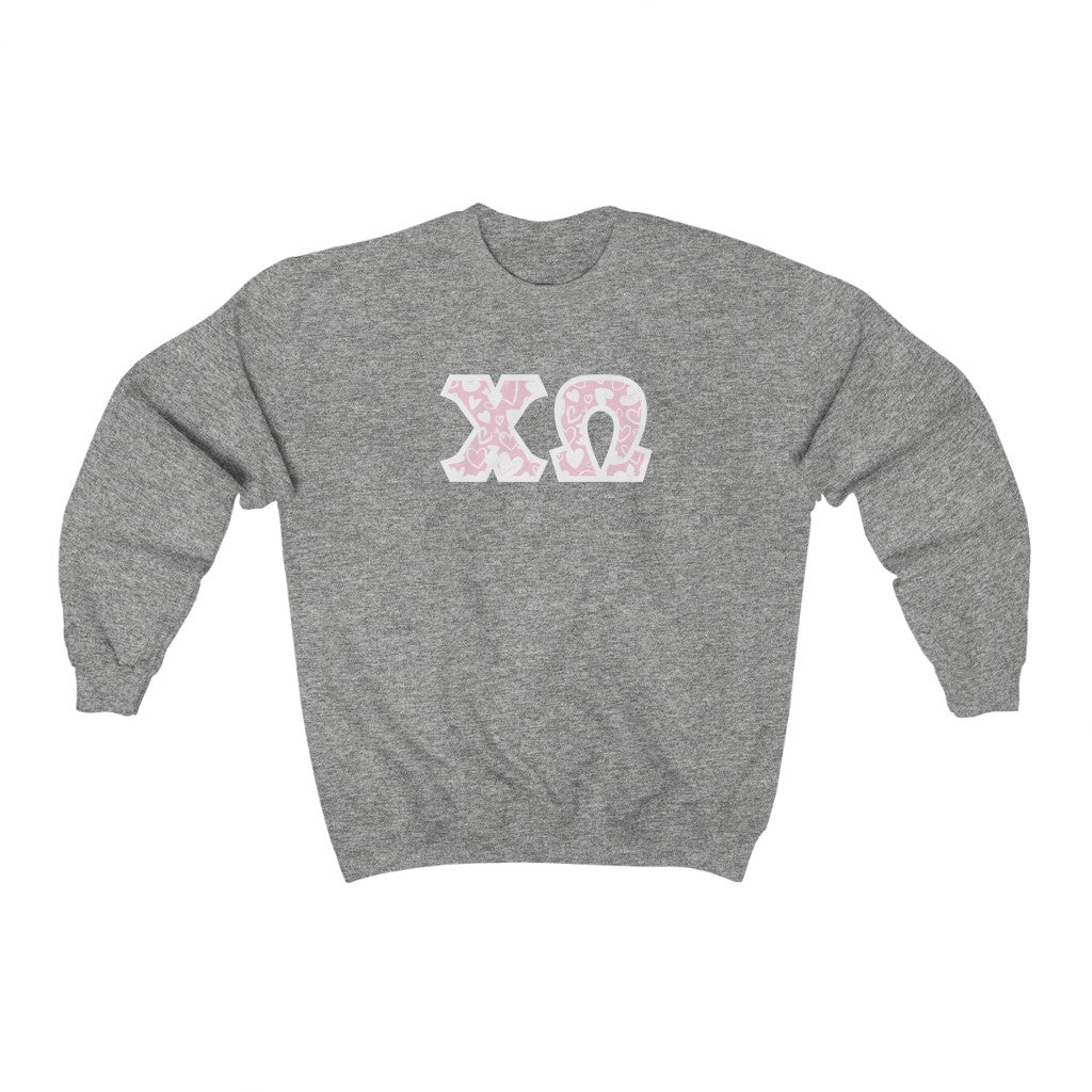 Chi Omega Printed Letters | Chalky Hearts Crewneck
