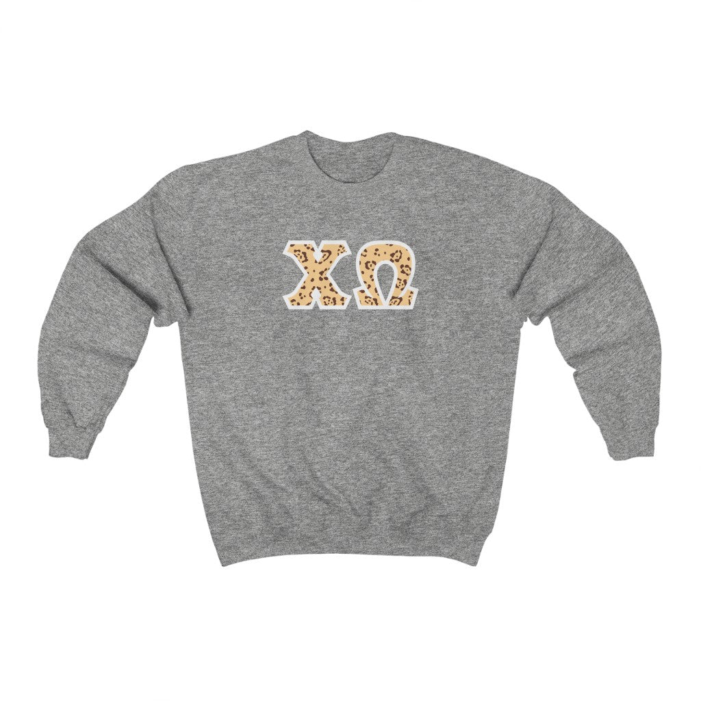 Chi Omega Printed Letters | Leopard Print Crewneck