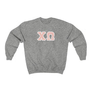 Chi Omega Printed Letters | Peach & White Border Crewneck