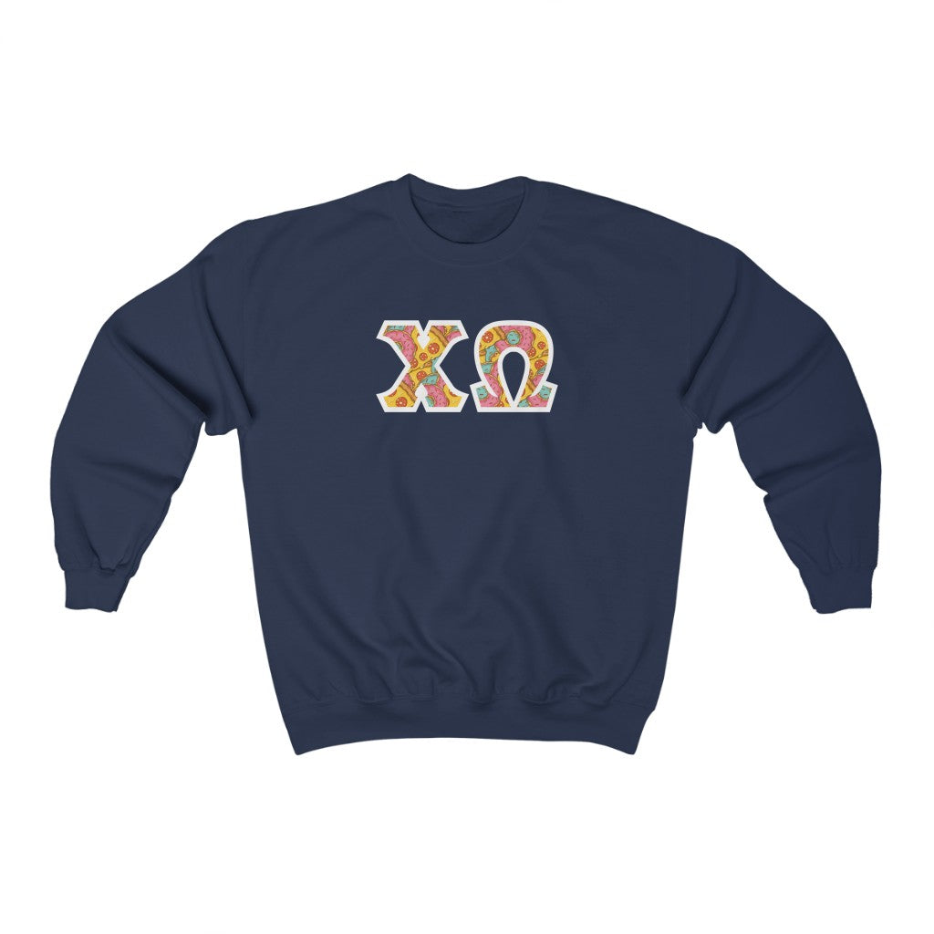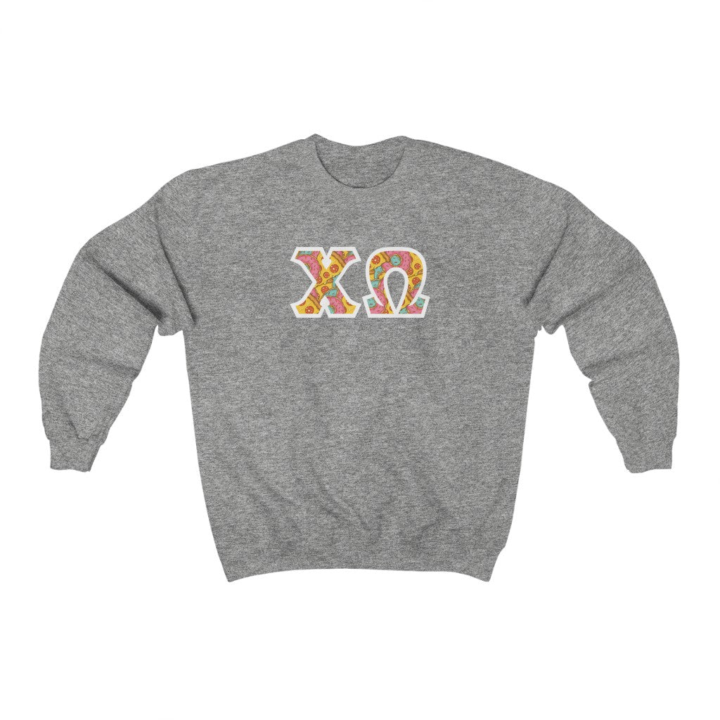 Chi Omega Printed Letters | Pizza and Donuts Crewneck