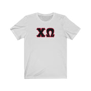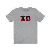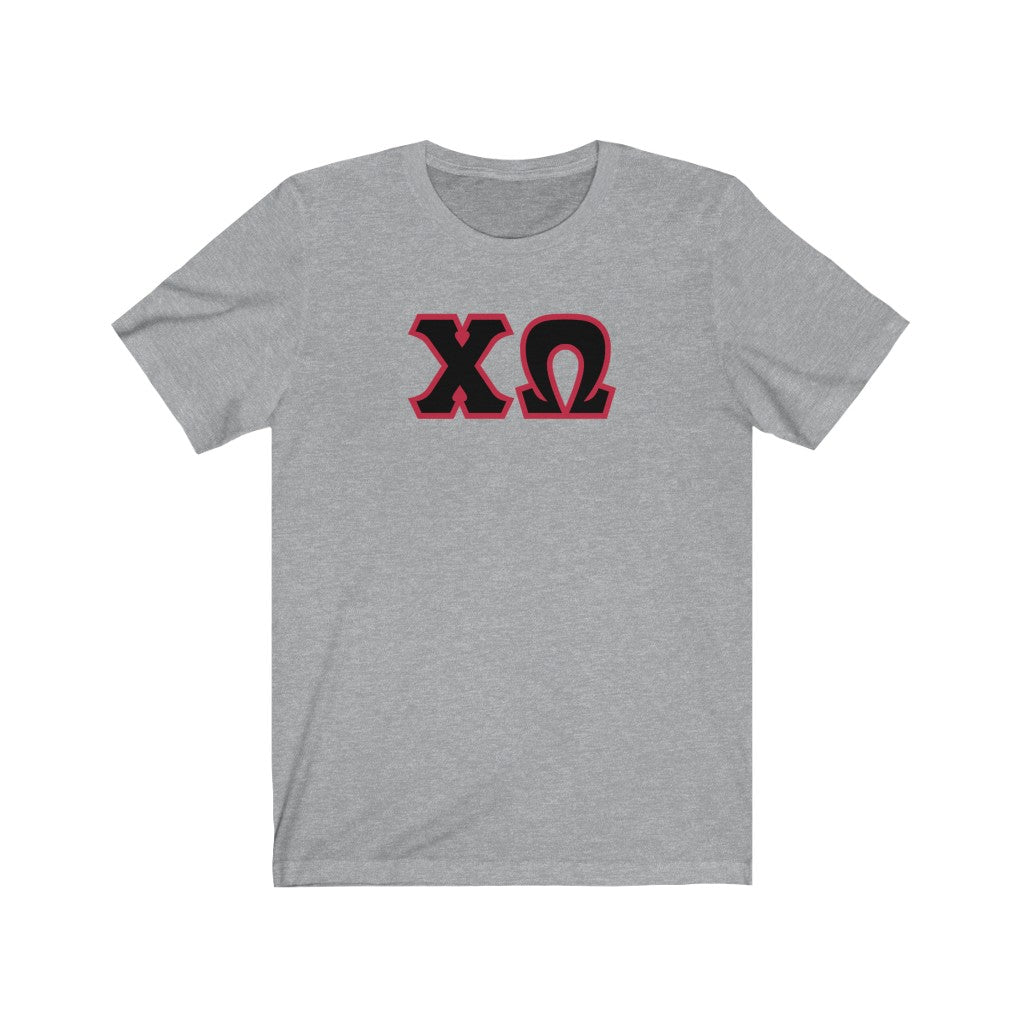 Chi Omega Print Letters | Black & Cardinal Border T-Shirt