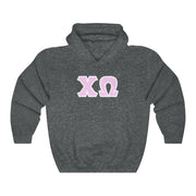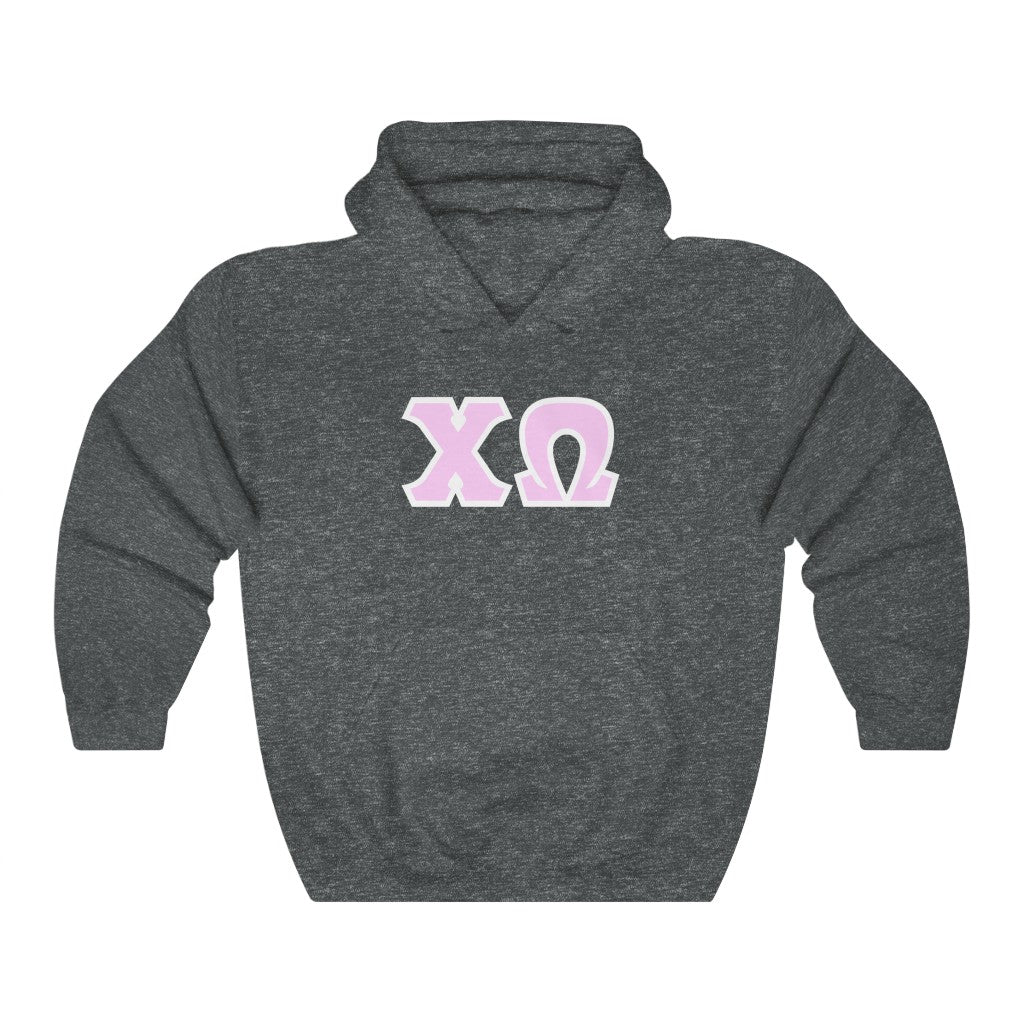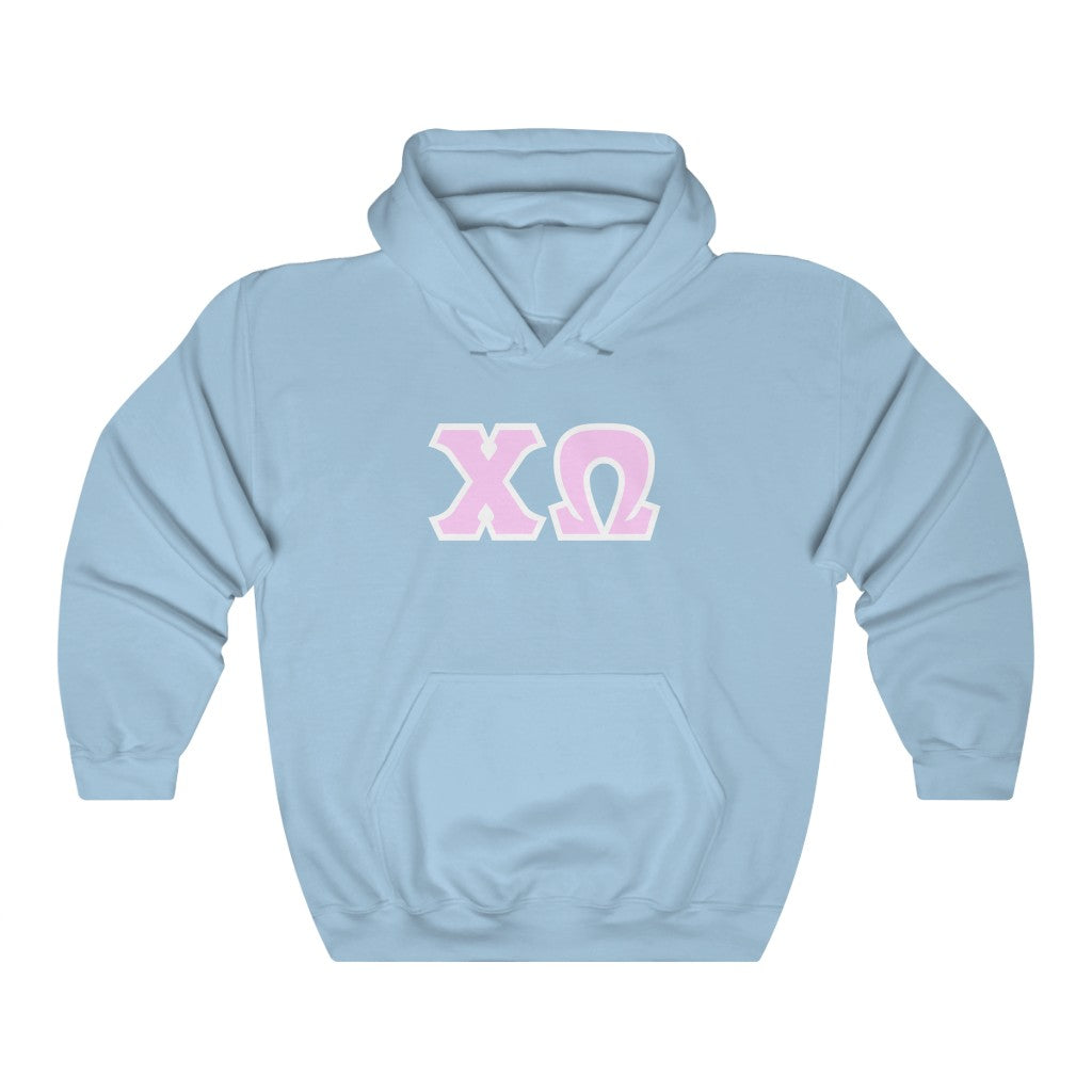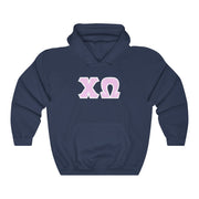 Chi Omega Print Letters | Pink with White Border Hoodie