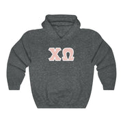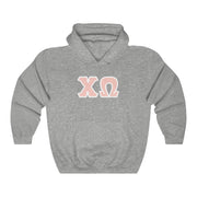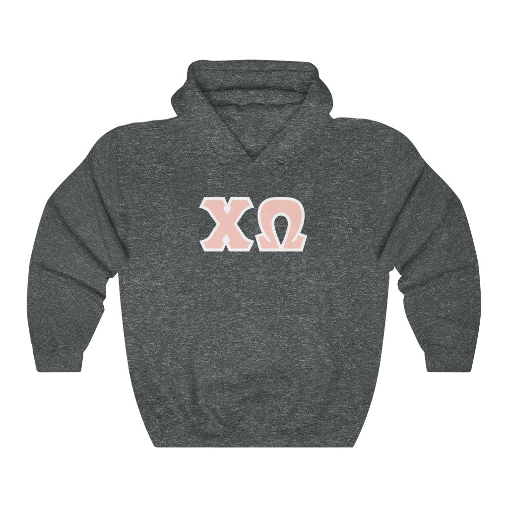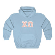 Chi Omega Print Letters | Peach with White Border Hoodie