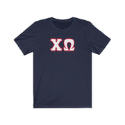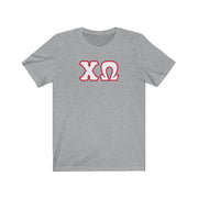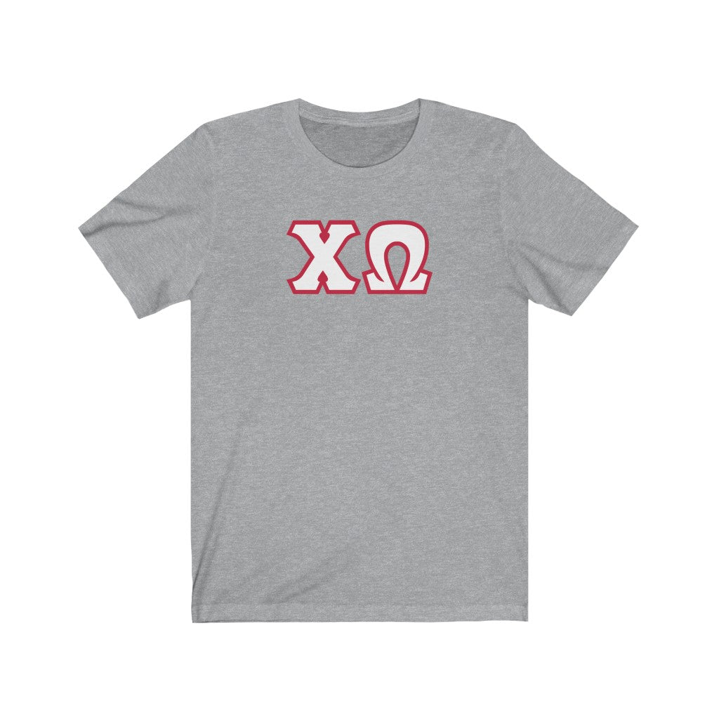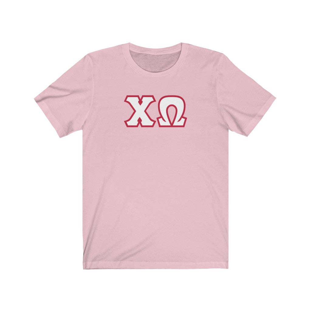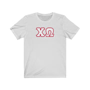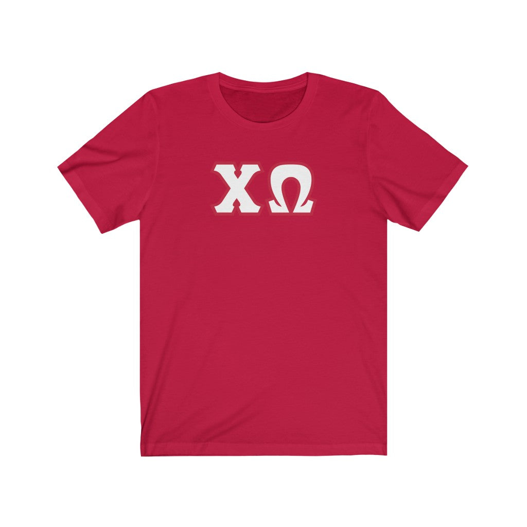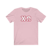 Chi Omega Print Letters | White & Cardinal Border T-Shirt