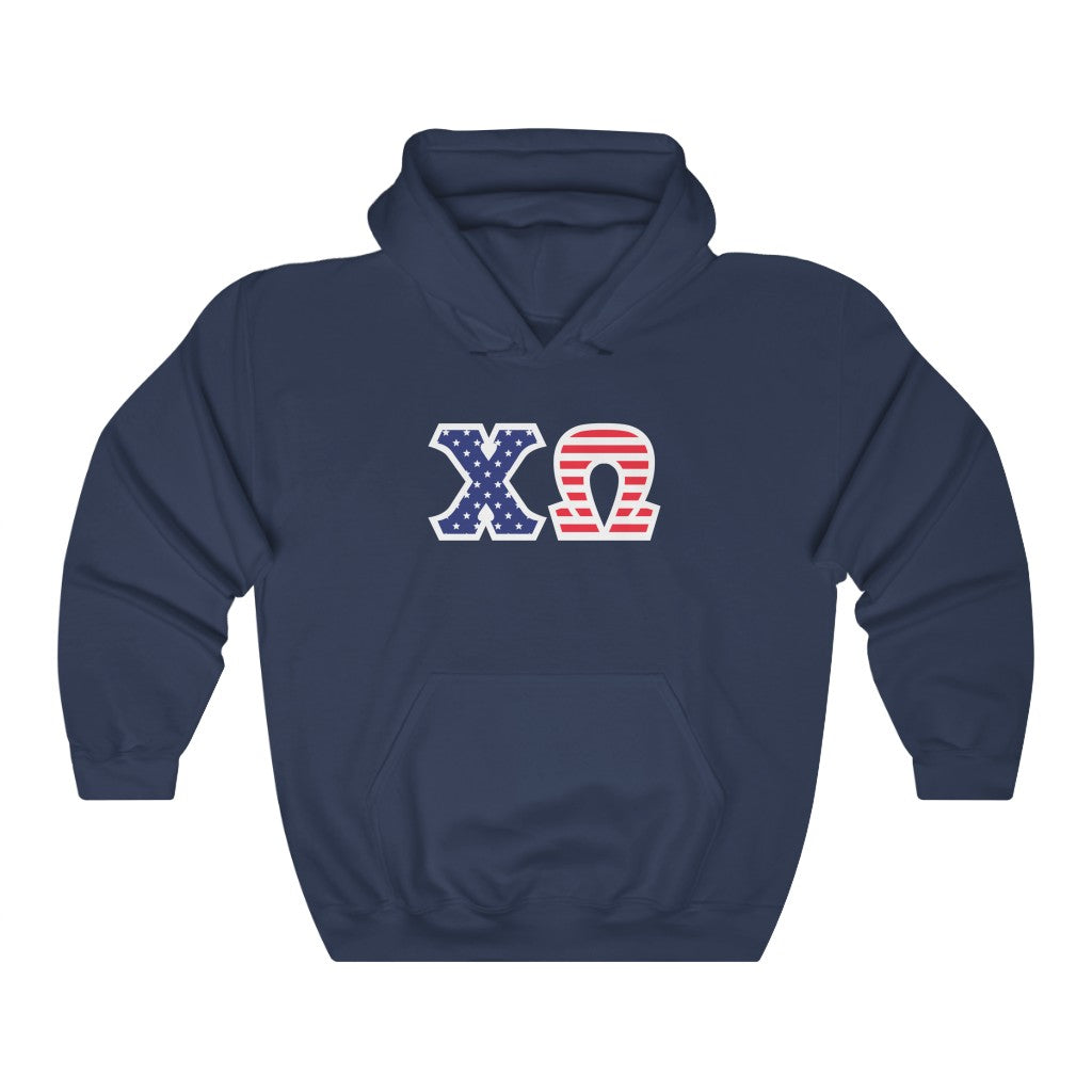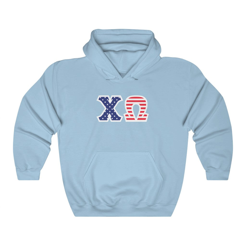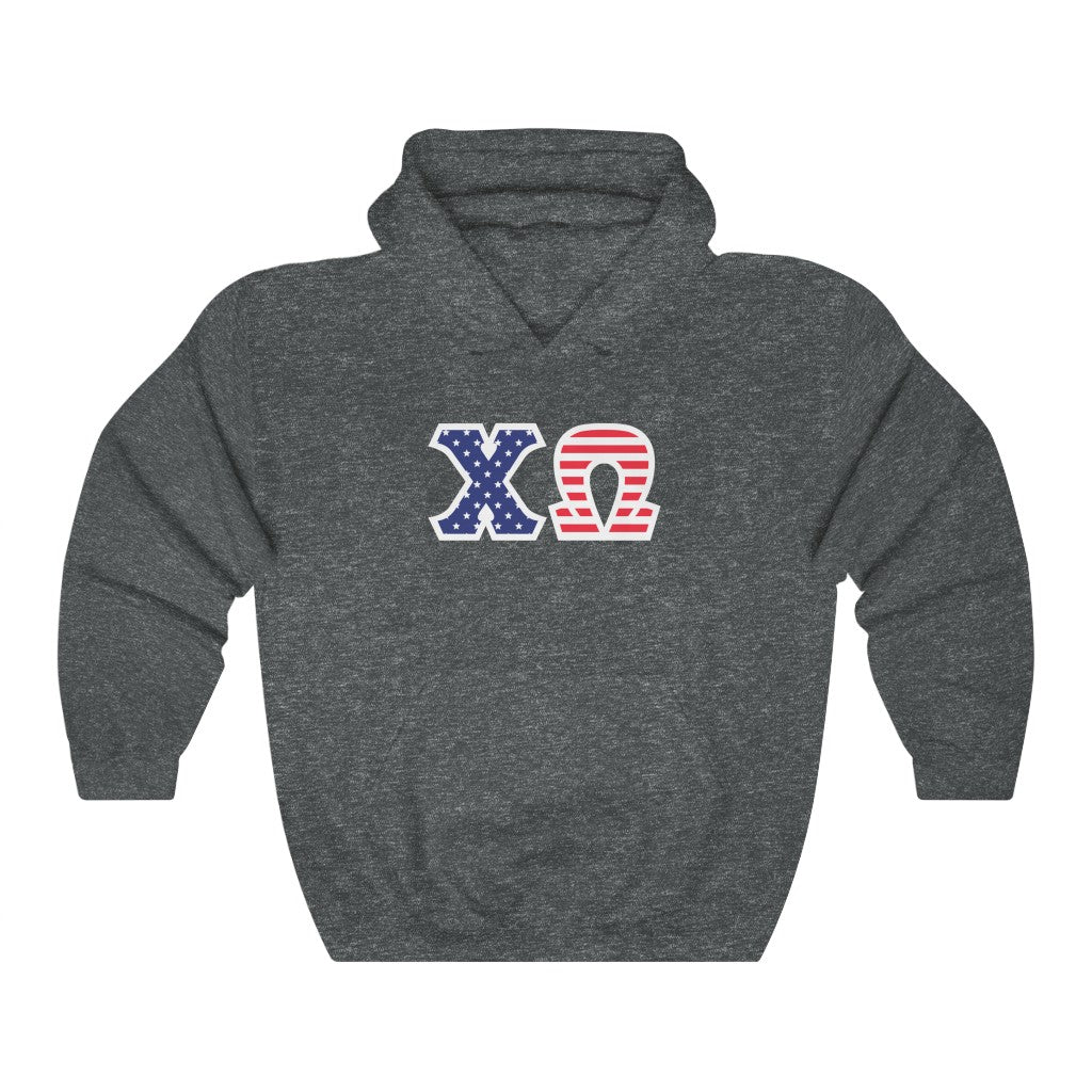 Chi Omega Printed Letters | American Flag Letters Hoodie