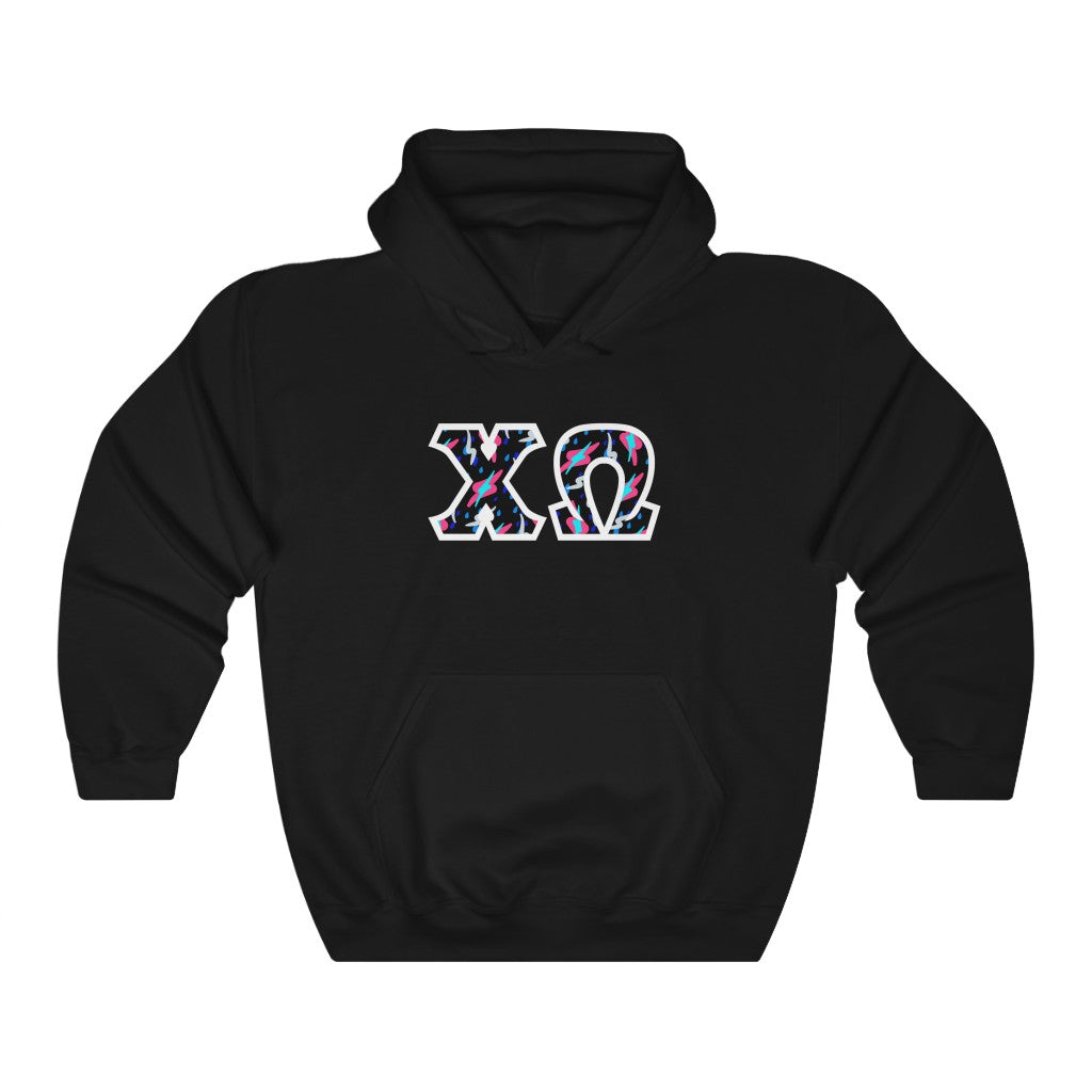 Chi Omega Printed Letters | Bayside Black Hoodie