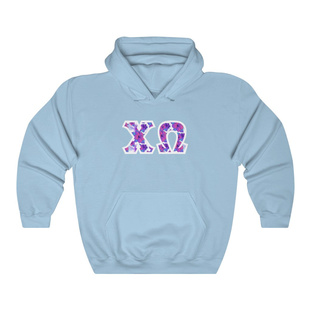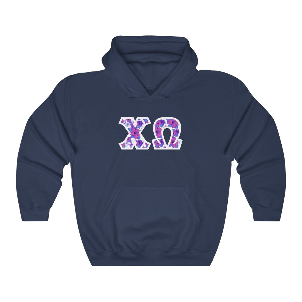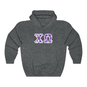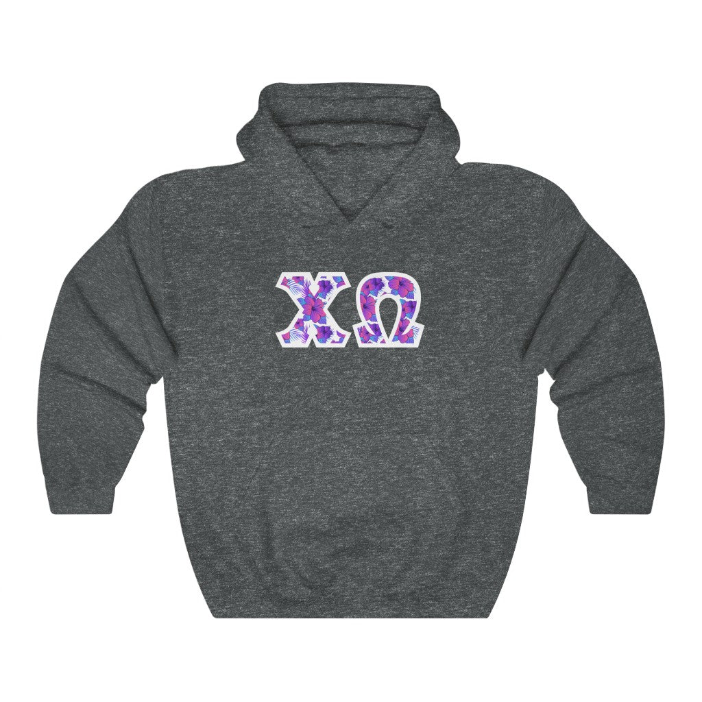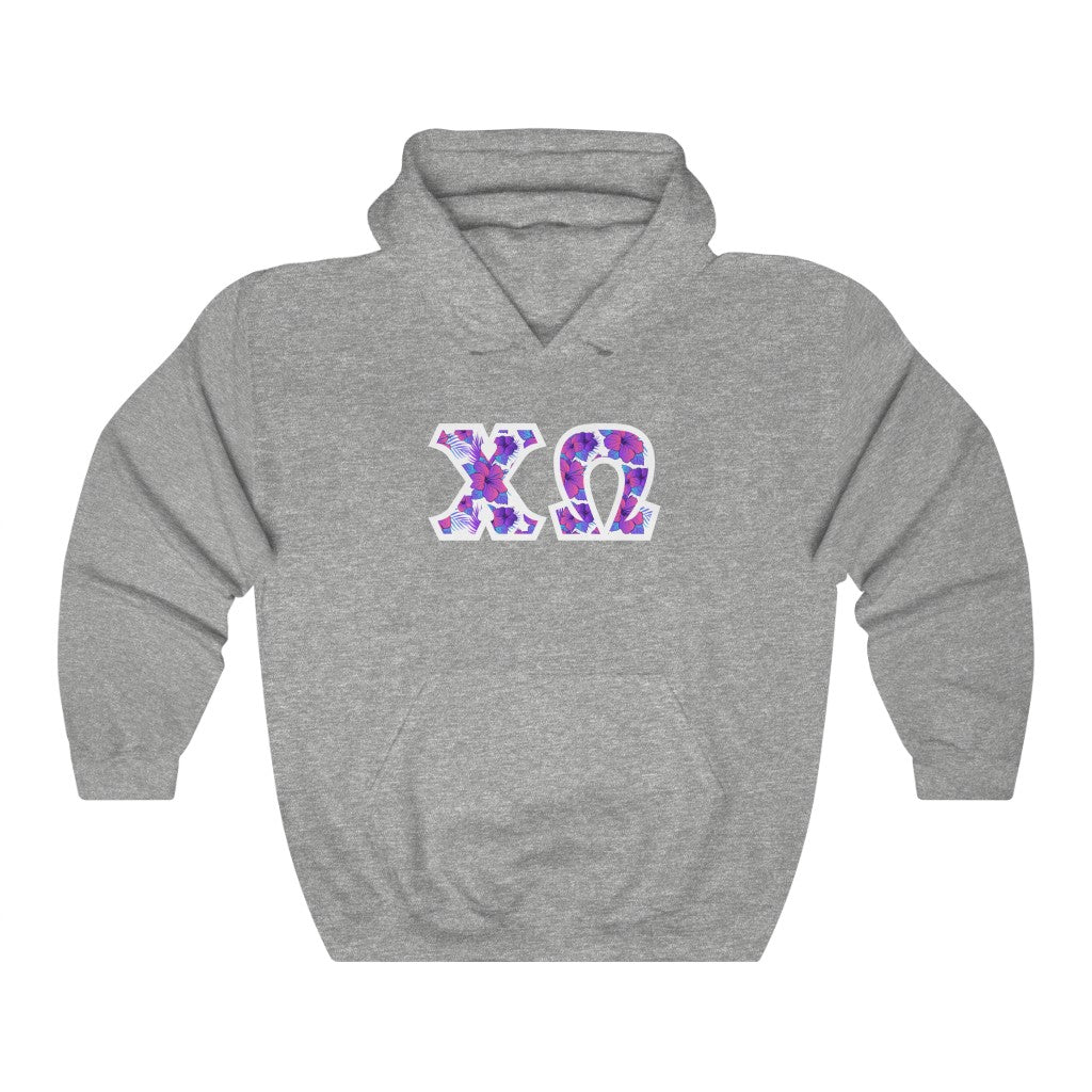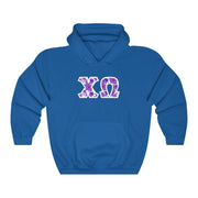 These Chi Omega sorority letters are printed NOT stitched. They come in a number of color and garment options.