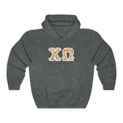 These Chi Omega sorority letters are printed NOT stitched. They come in a number of color and garment options.