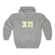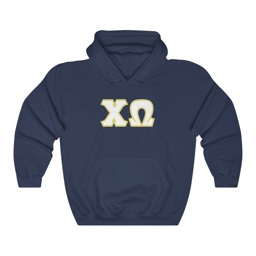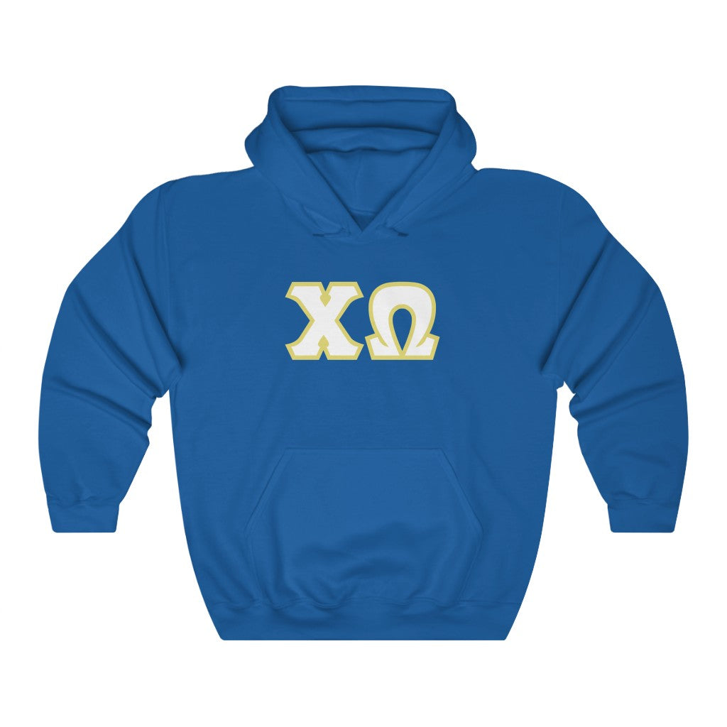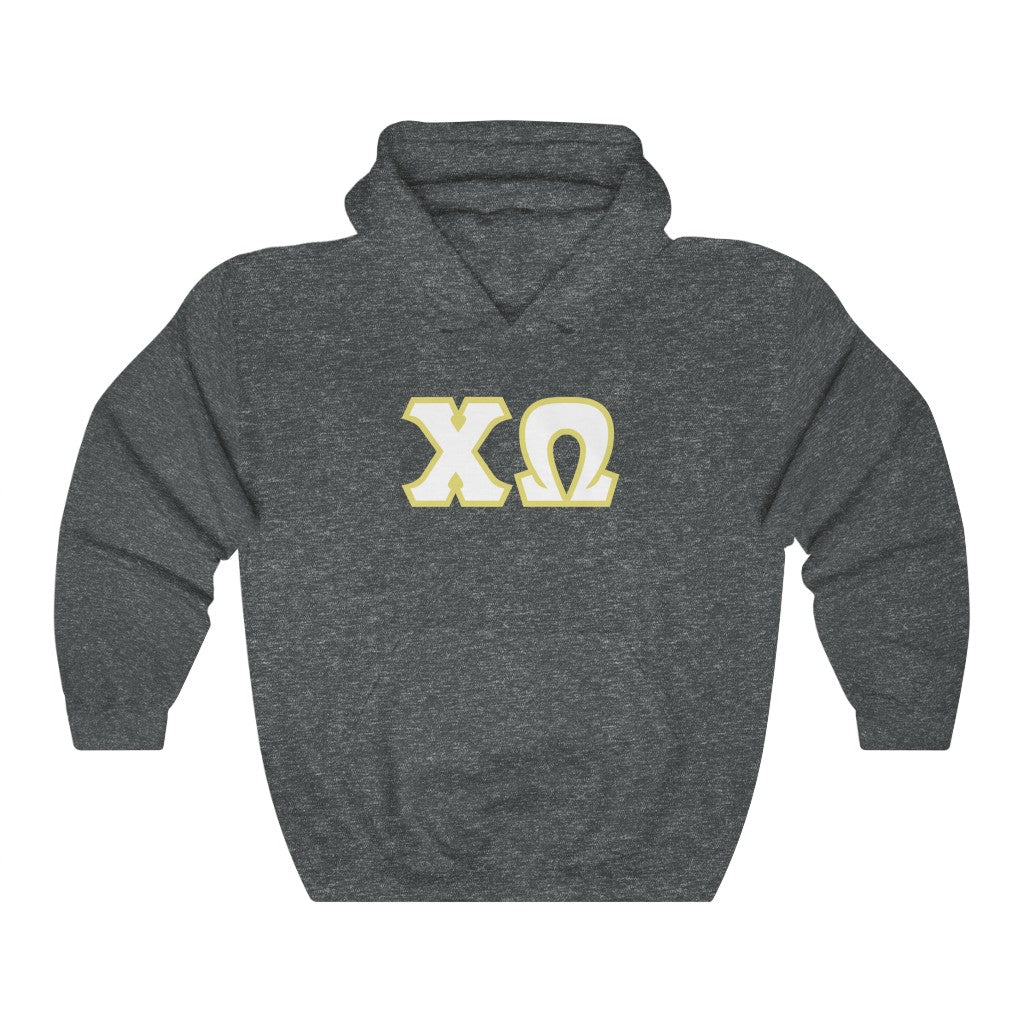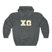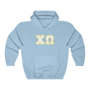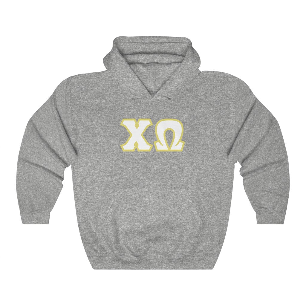 Chi Omega Printed Letters | White and Straw Border Hoodie
