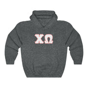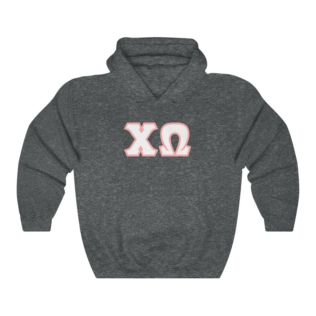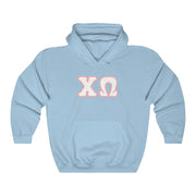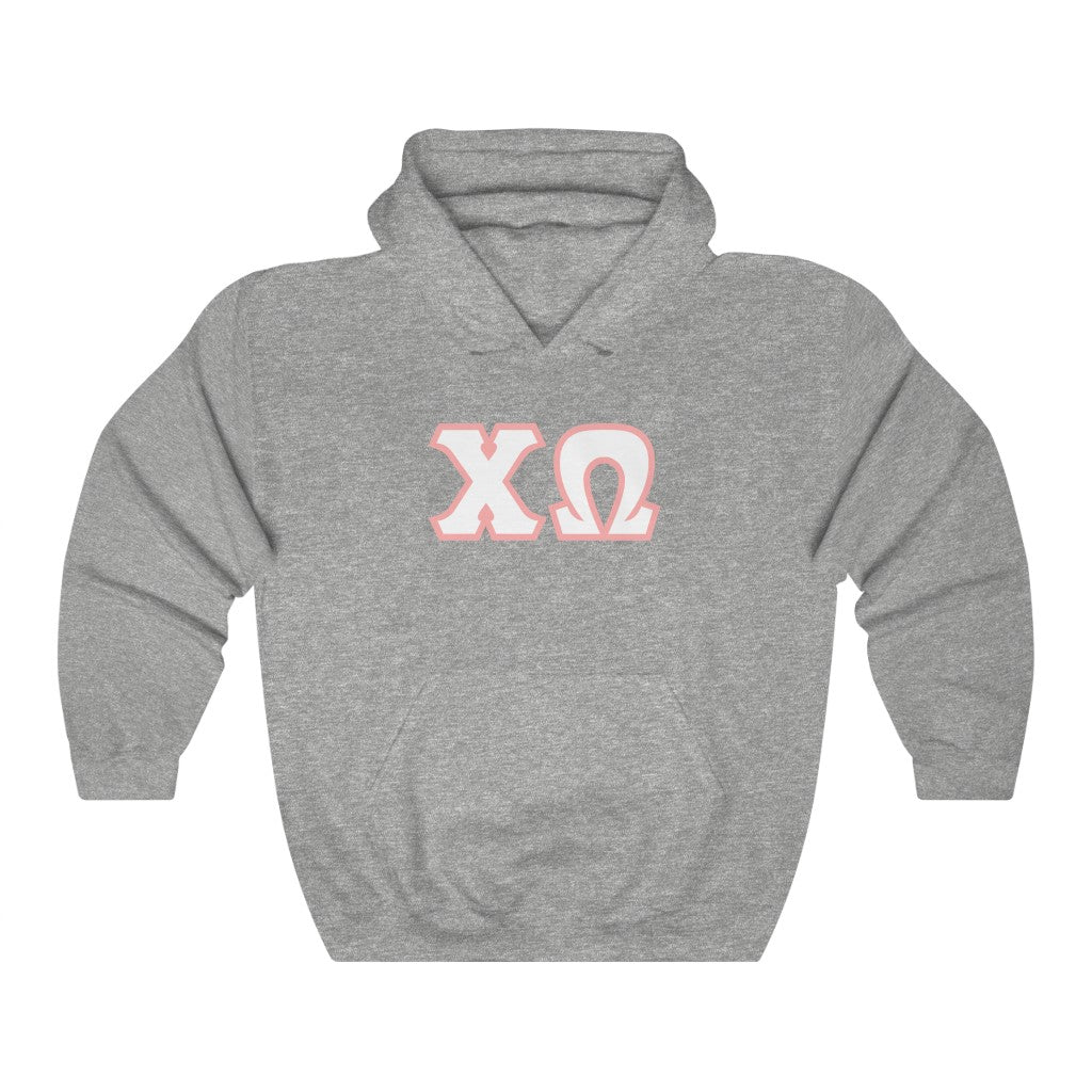 Chi Omega Printed Letters | White with Pink Border Hoodie