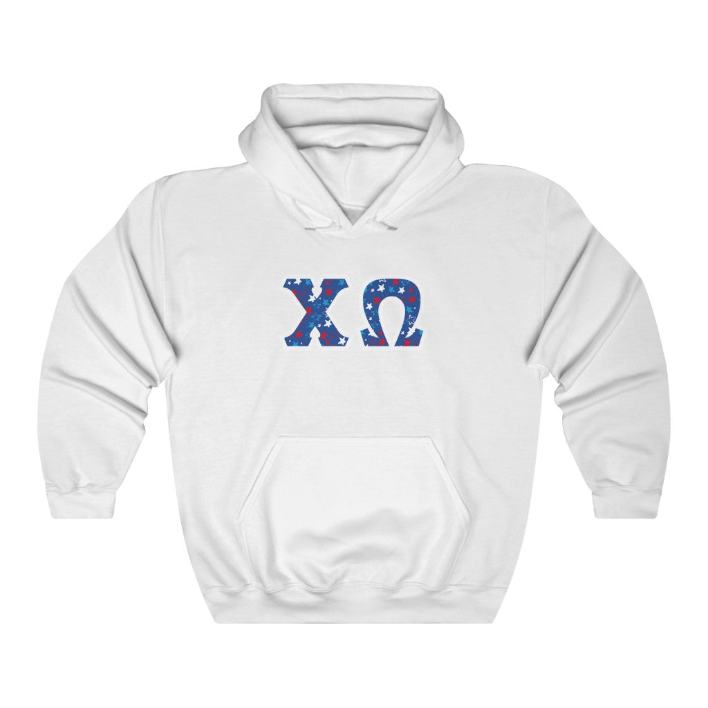 Chi Omega Printed Letters | USA Stars Hoodie$59.99$59.99$59.99Unit price / per