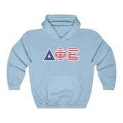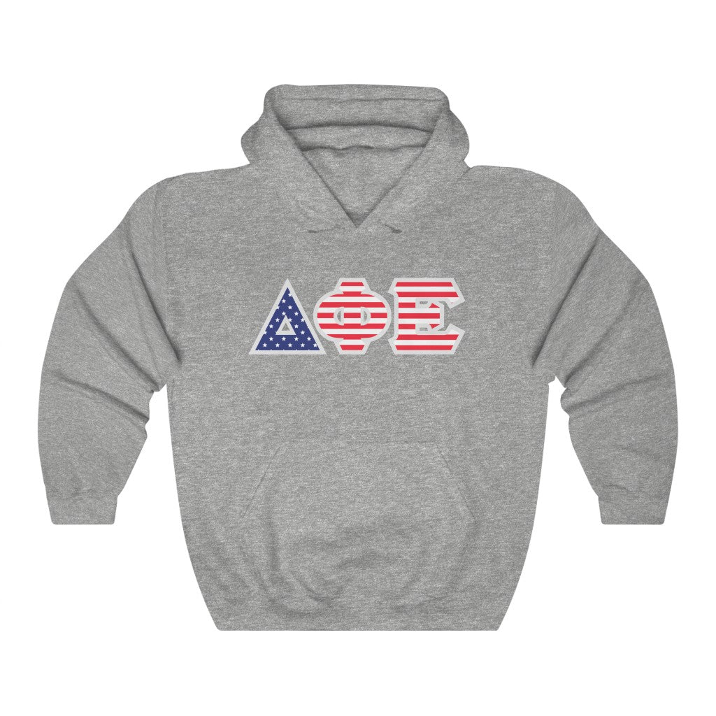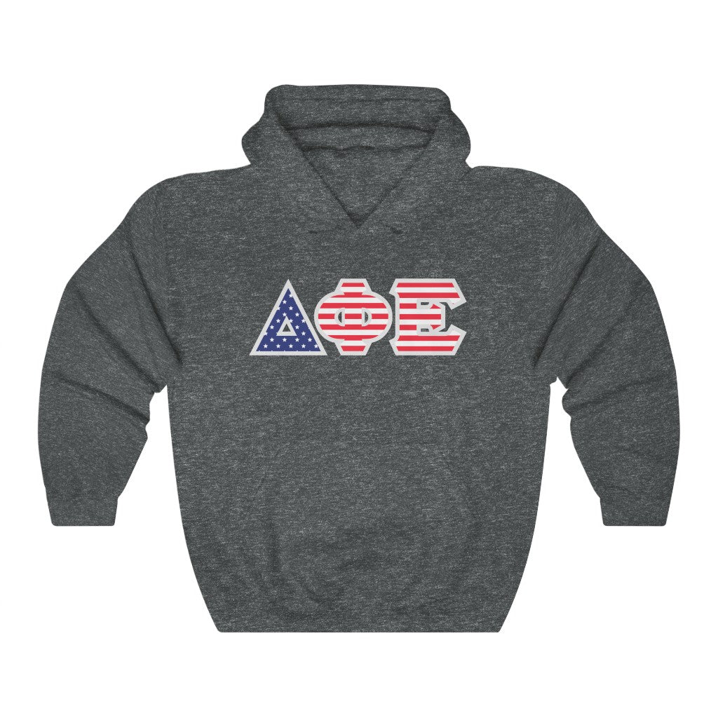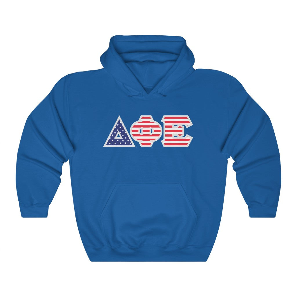 Delta Phi Epsilon Printed Letters | American Flag Pattern Hoodie