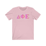 Delta Phi Epsilon Printed Letters | Bubble Gum T-Shirt