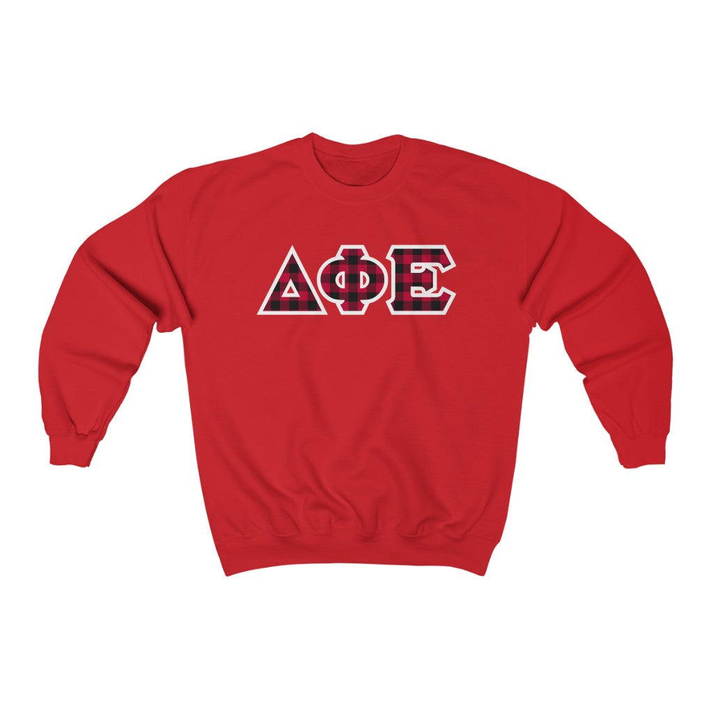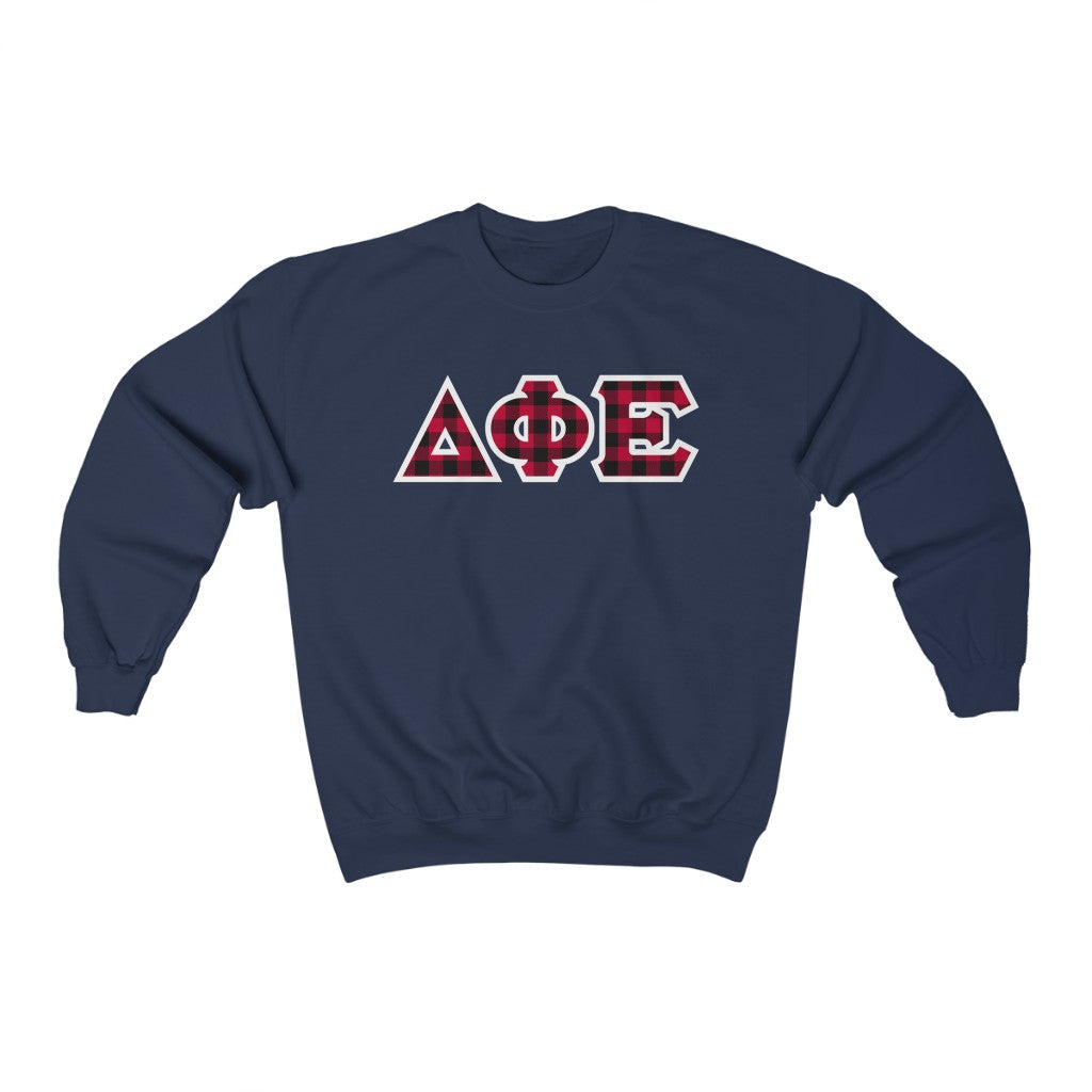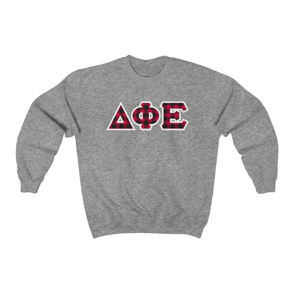 Delta Phi Epsilon Printed Letters | Buffalo Plaid Crewneck