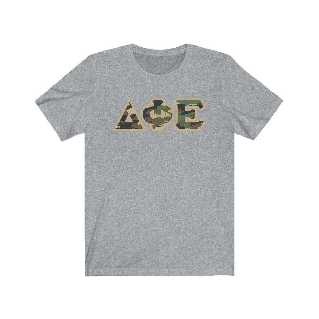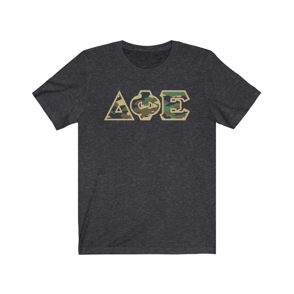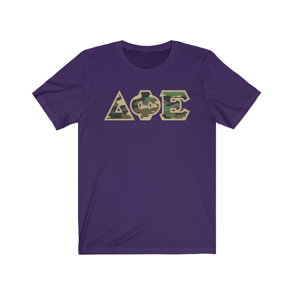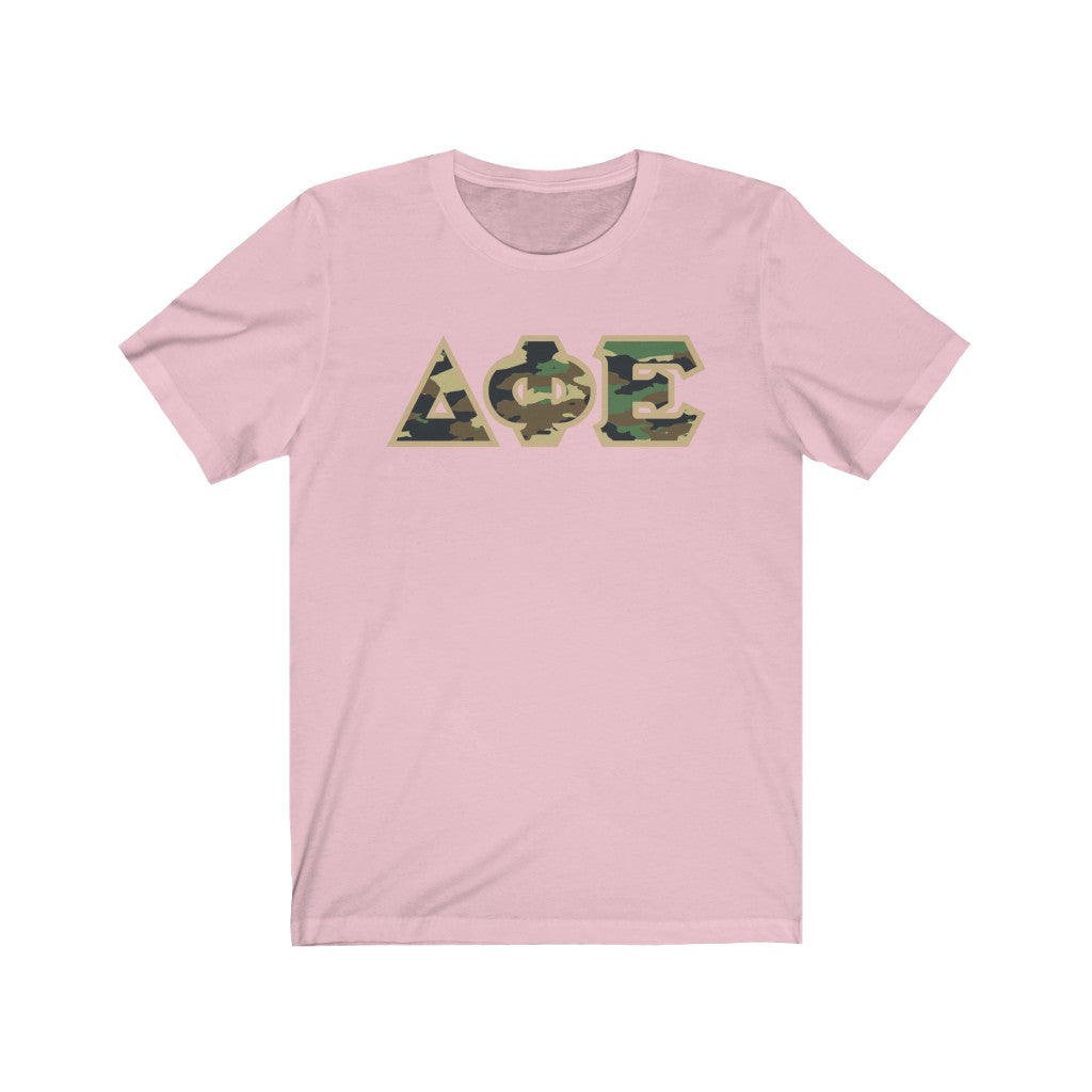 Delta Phi Epsilon Printed Letters | Camouflage T-Shirt