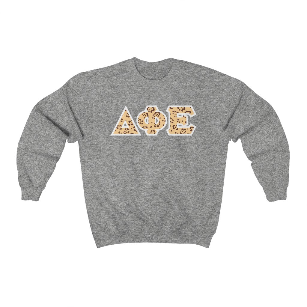 Delta Phi Epsilon Printed Letters | Leopard Print Crewneck