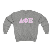 Delta Phi Epsilon Printed Letters | Light Pink & Grey Border Crewneck