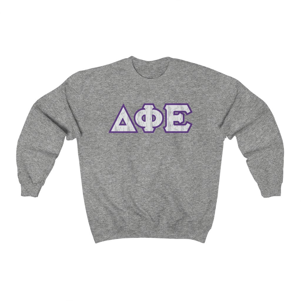 Delta Phi Epsilon Printed Letters | Marble with Purple Border Crewneck
