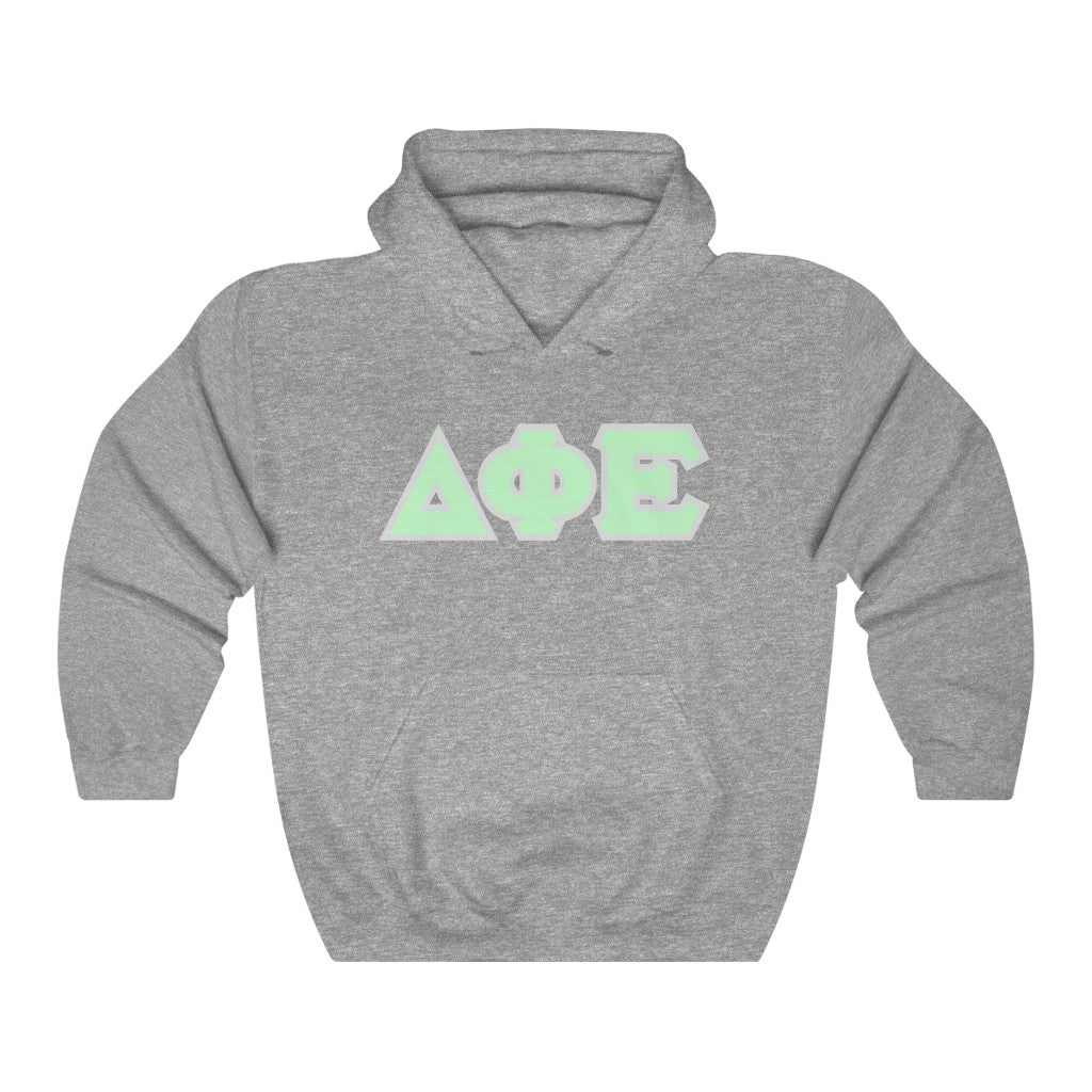 Delta Phi Epsilon Printed Letters | Mint with Grey Border Hoodie