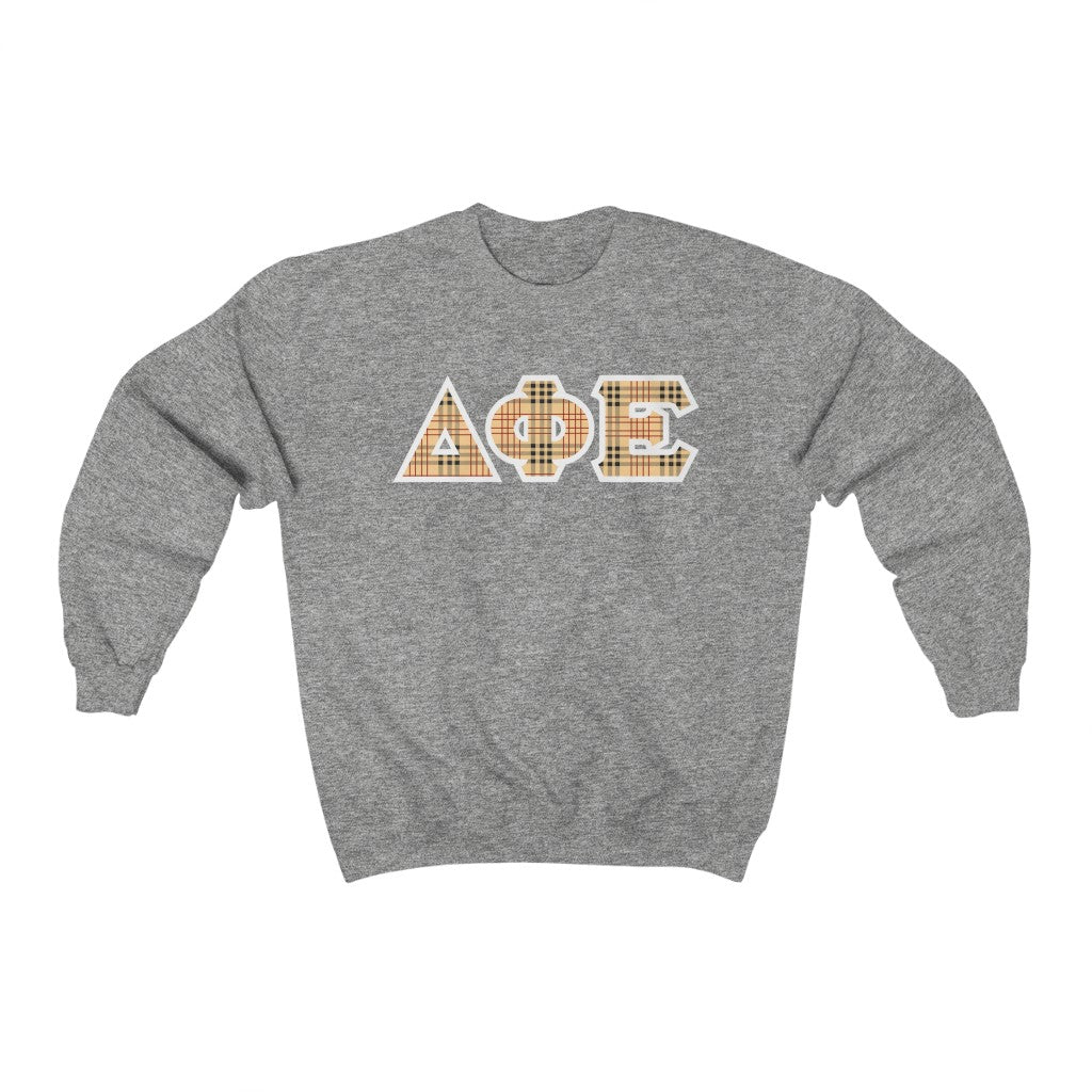 Delta Phi Epsilon Printed Letters | Nova Plaid Crewneck