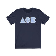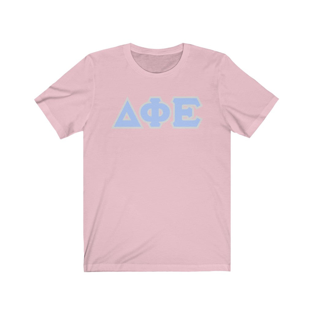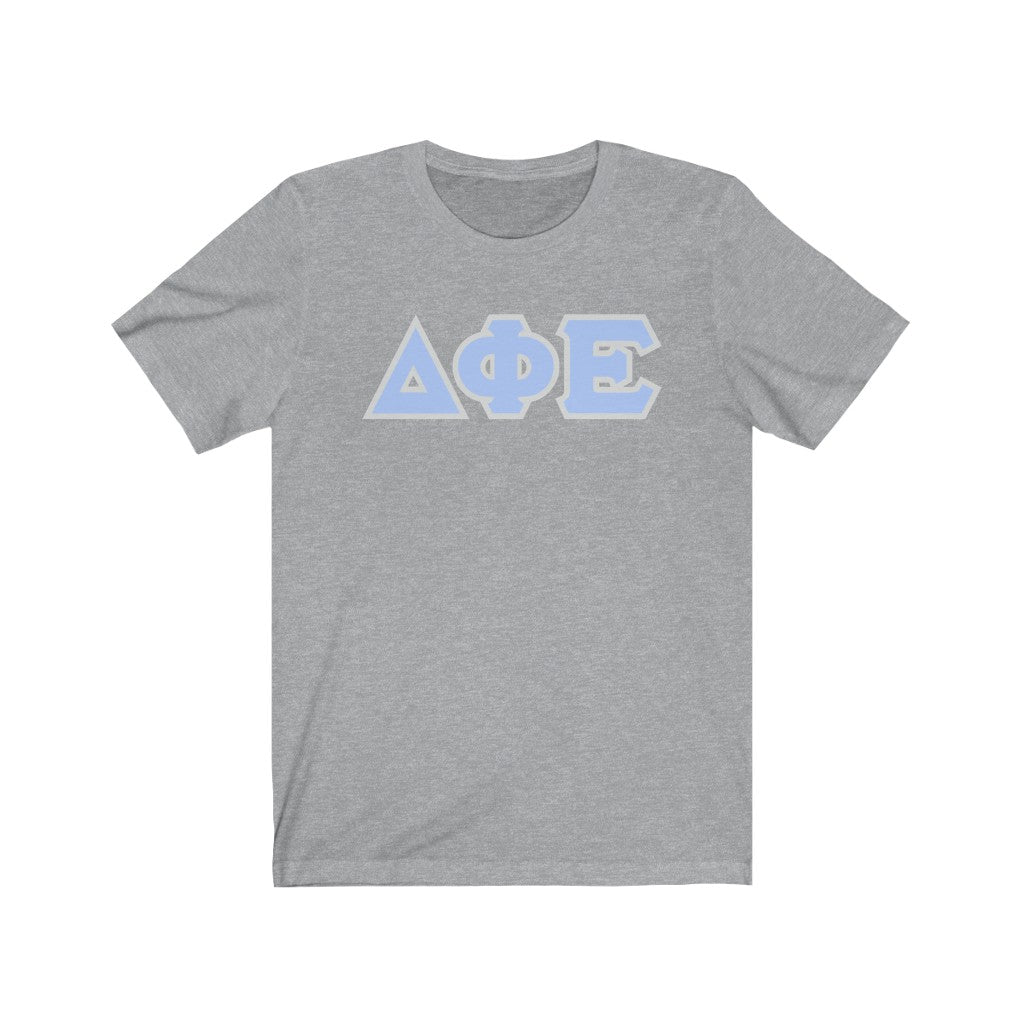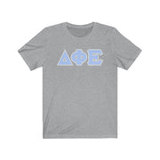Delta Phi Epsilon Printed Letters | Pastel Blue & Grey Border T-Shirt