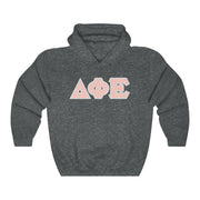 Delta Phi Epsilon Printed Letters | Peach with Grey Border Hoodie