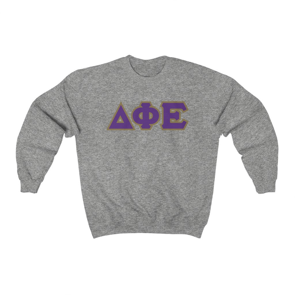 Delta Phi Epsilon Printed Letters | Purple with Gold Border Crewneck
