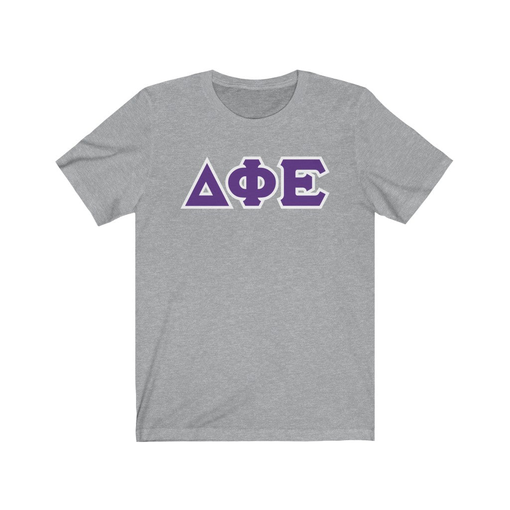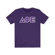 Delta Phi Epsilon Printed Letters | Purple with White Border T-Shirt