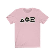 These Delta Phi Epsilon sorority letters are printed NOT stitched. They come in a number of color and garment options.