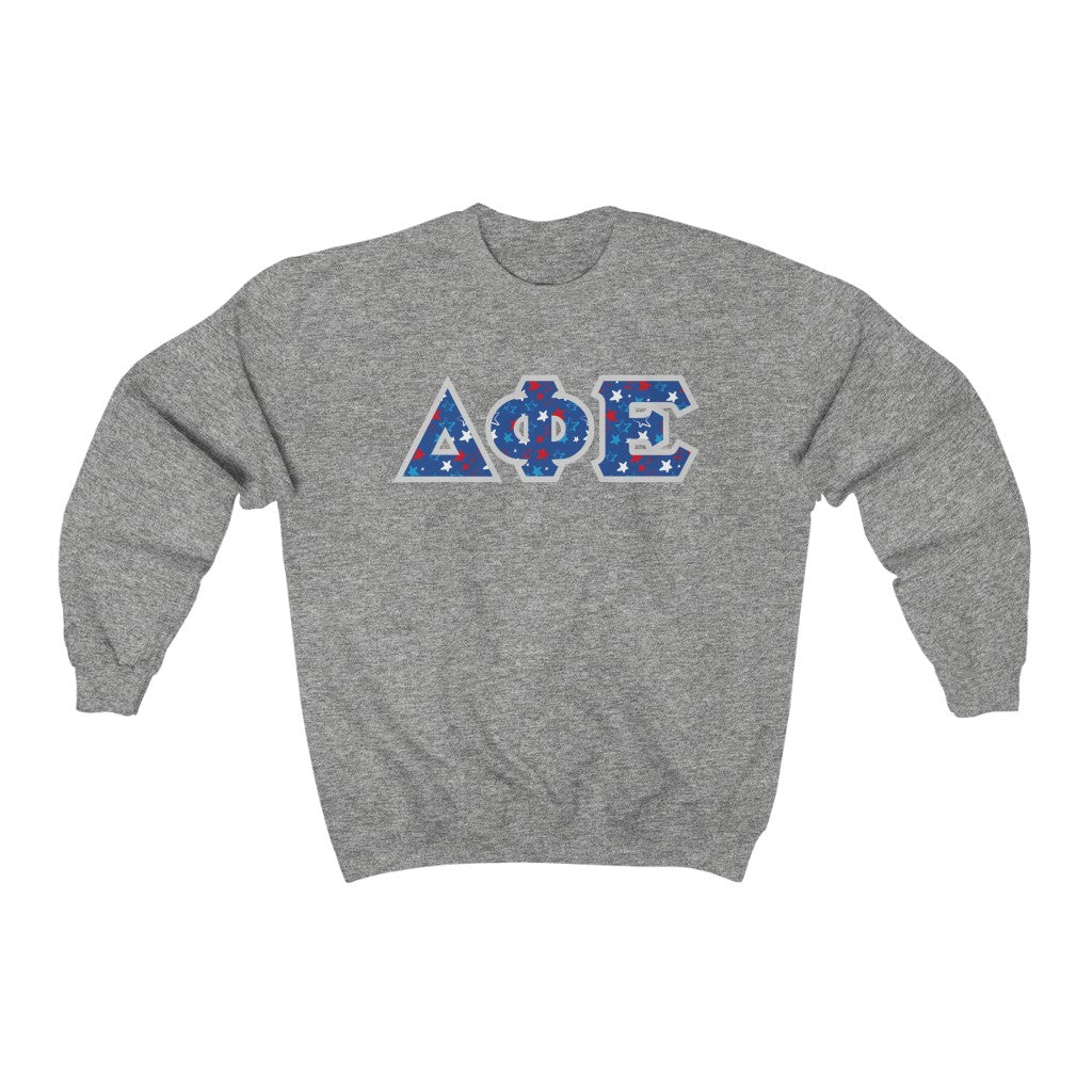 Delta Phi Epsilon Printed Letters | USA Stars Crewneck
