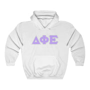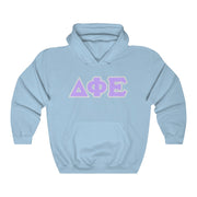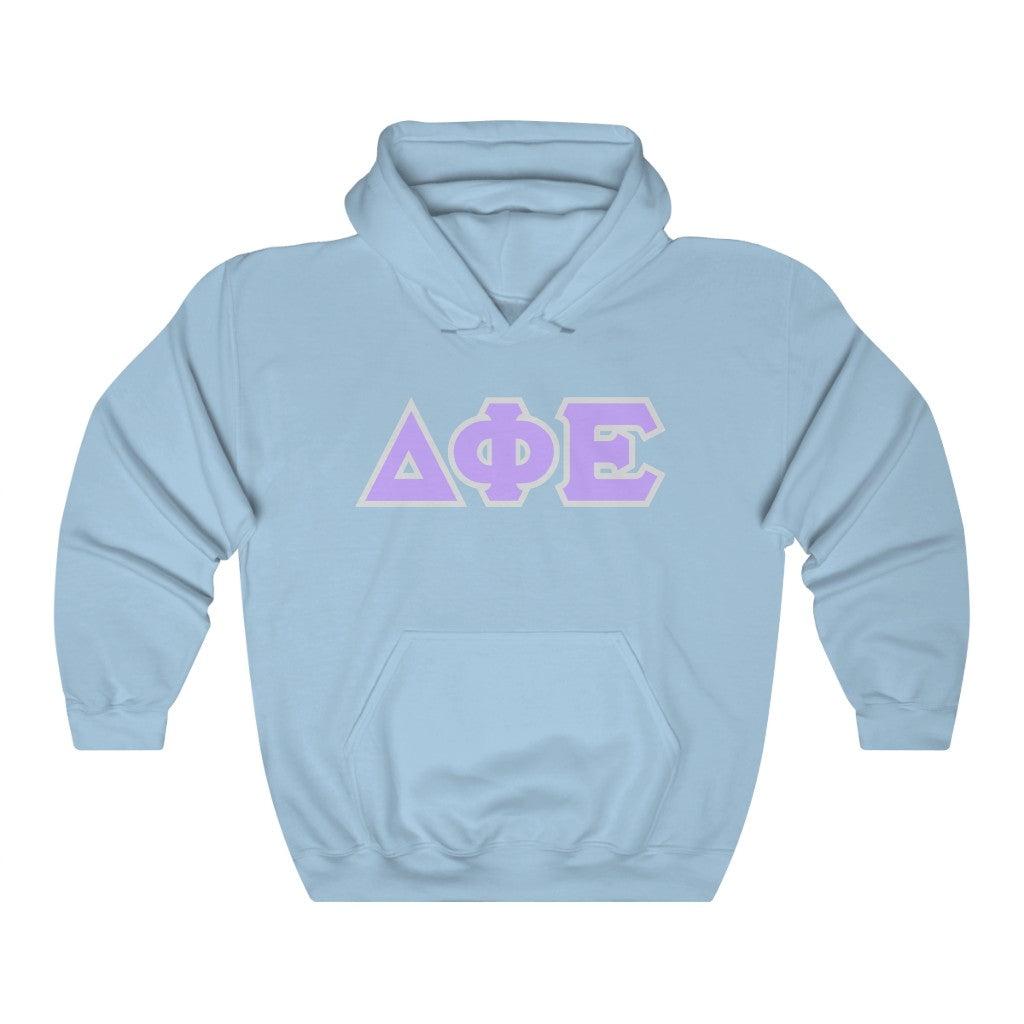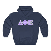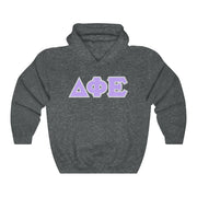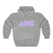 Delta Phi Epsilon Printed Letters | Violet with Grey Border Hoodie