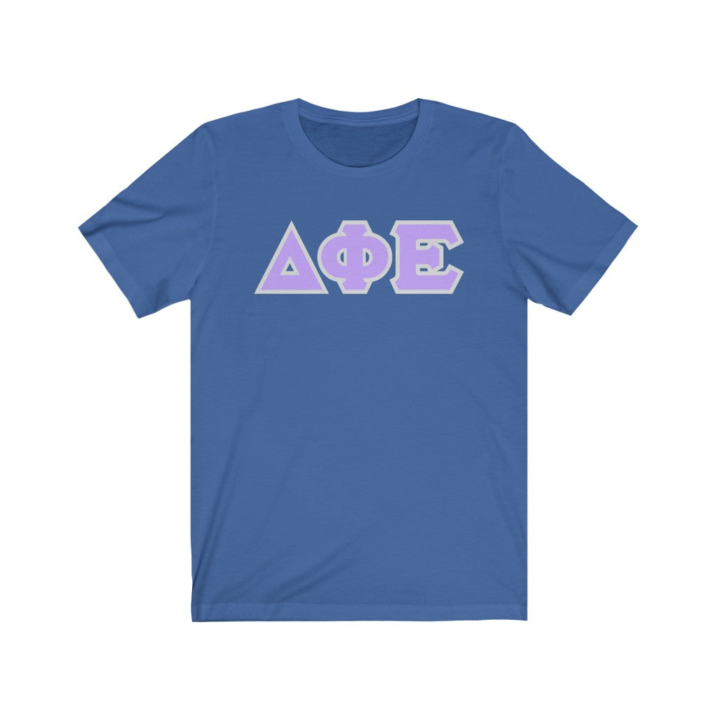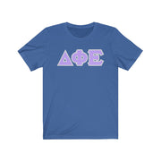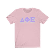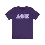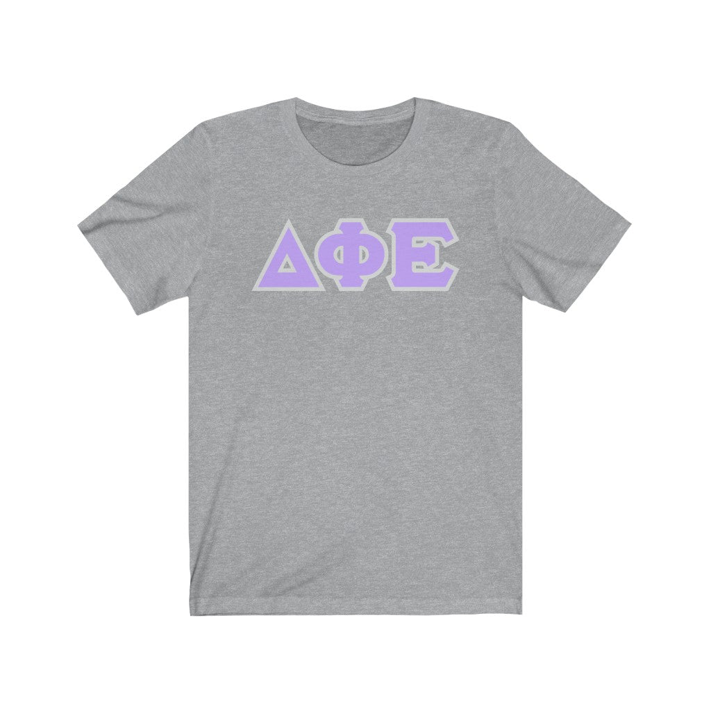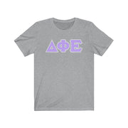 Delta Phi Epsilon Printed Letters | Violet with Grey Border T-Shirt