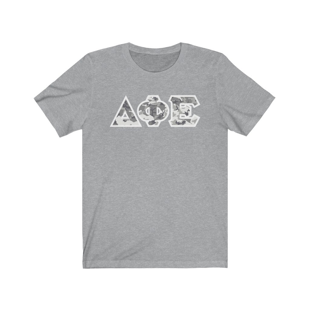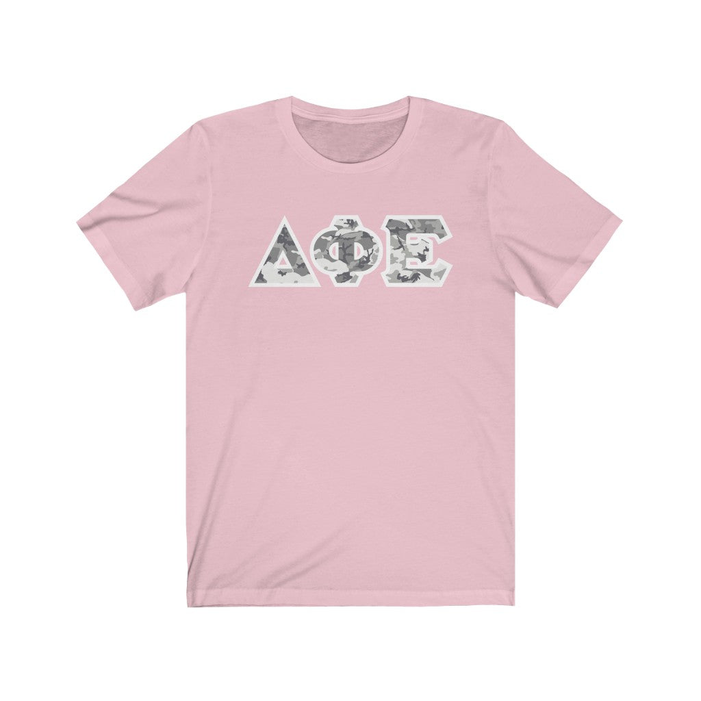 Delta Phi Epsilon Printed Letters | Winter Camo T-Shirt