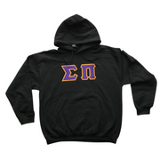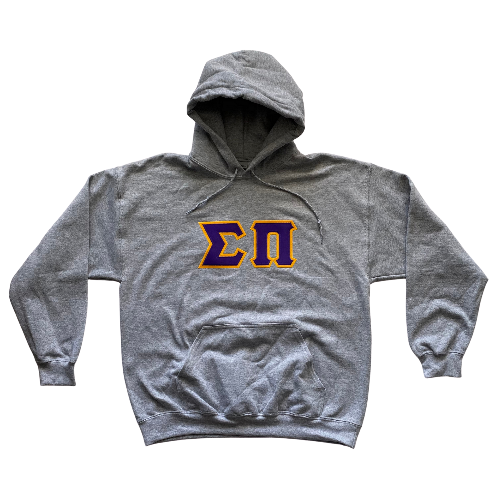 Sigma Pi Stitched Letter Hoodie | Purple with Gold Border