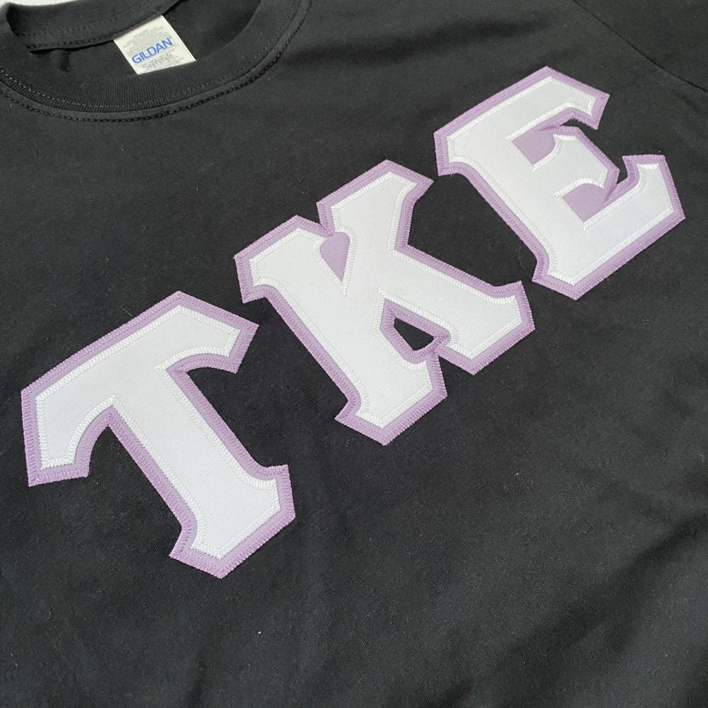 Tau Kappa Epsilon Stitched Letter T-Shirt | Black | White with Lilac Border