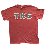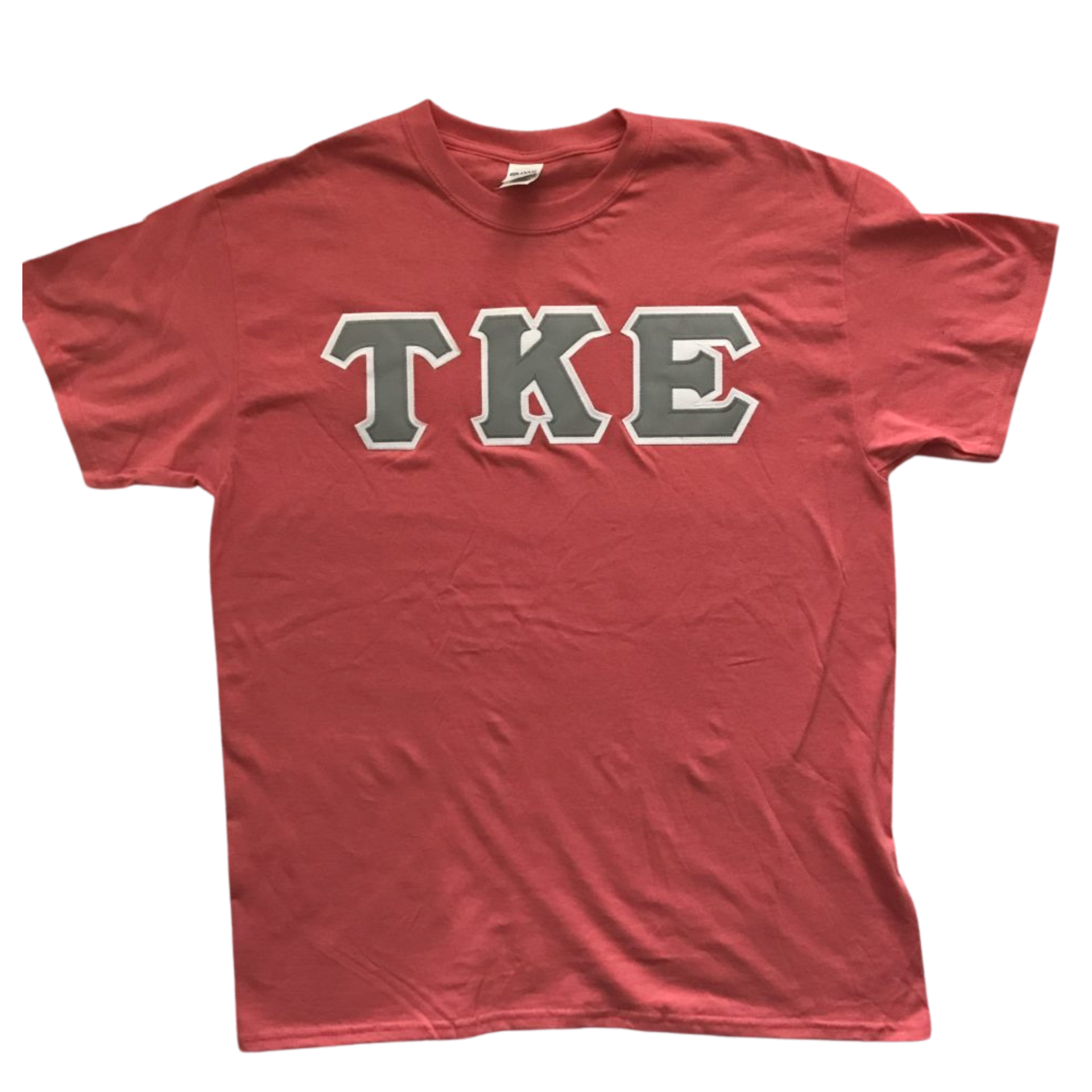 Tau Kappa Epsilon Stitched Letter T-Shirt | Coral Silk | Gray with White Border