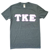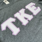 Tau Kappa Epsilon Stitched Letter T-Shirt | Dark Heather | White with Lilac Border