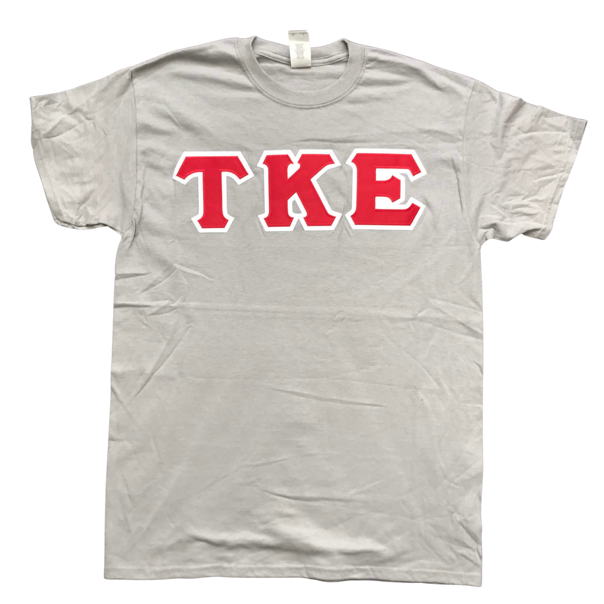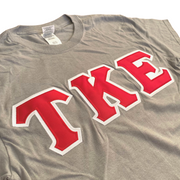 Tau Kappa Epsilon Stitched Letter T-Shirt | Gravel | Red with White Border